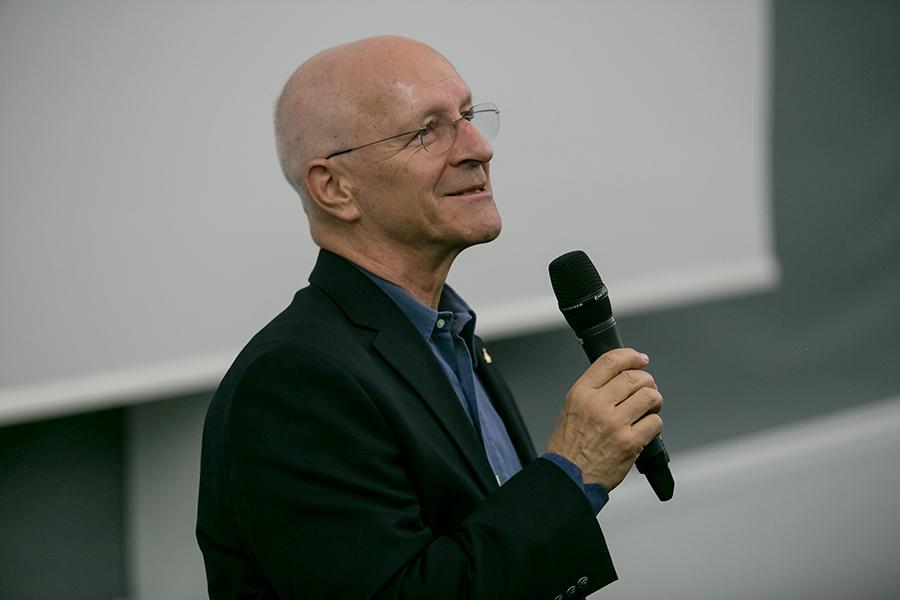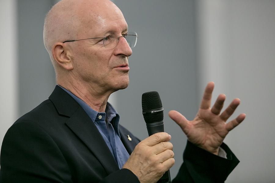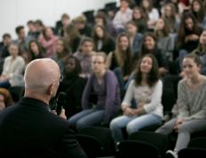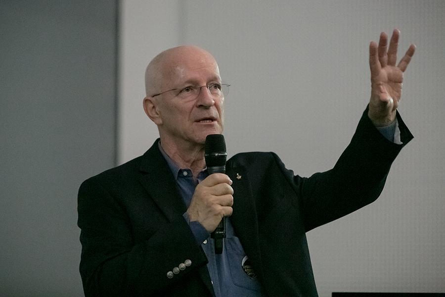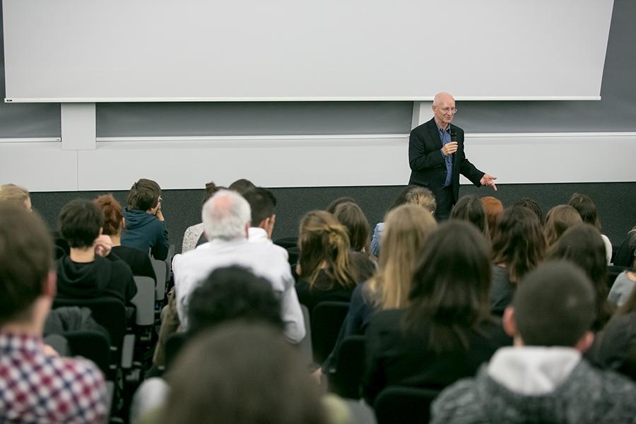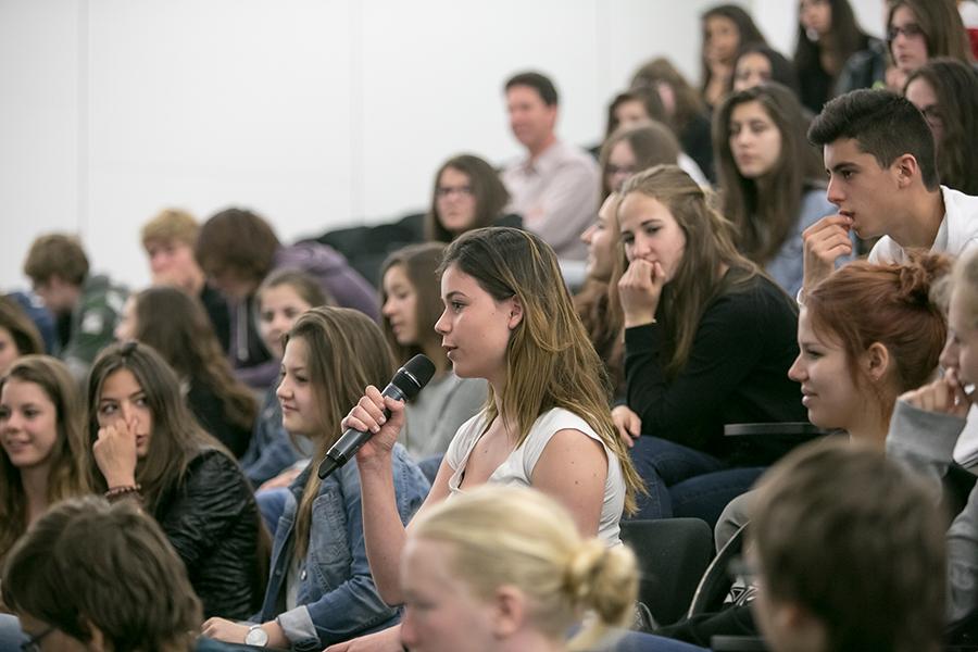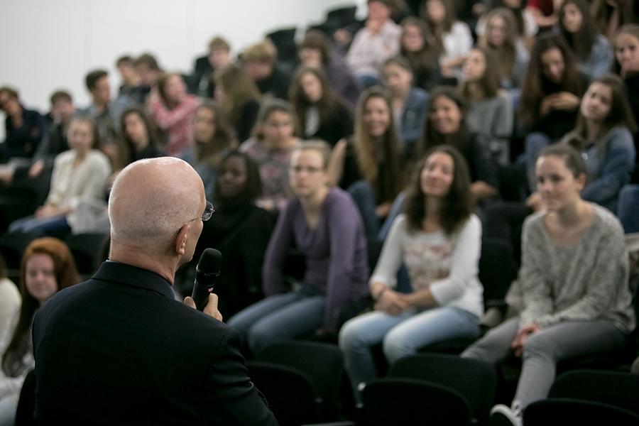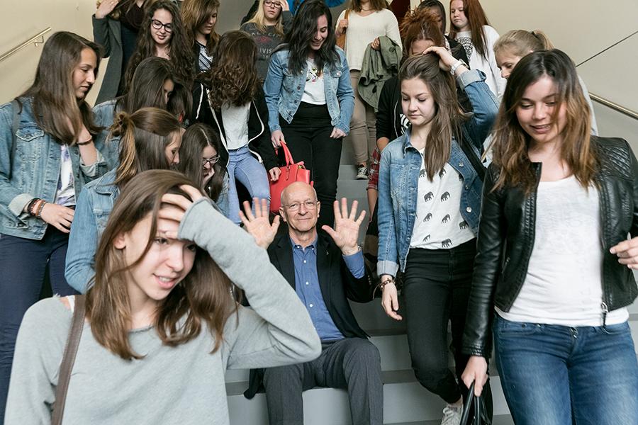 Astrophysicien, Astronaute, Premier Suisse dans l'espace, Professeur en ingénierie à l'EPFL, Claude Nicollier a donné une conférence sur le thème « L’espace : pourquoi, comment ? ». "J’aimerais que les élèves comprennent l’utilité de se rendre dans l’espace ainsi que les opportunités de découvertes et d’enrichissement que cela représente. Il existe beaucoup de métiers liés à l’espace tels que ceux d’ingénieur, de mécanicien, de biologiste, même en Suisse. A Neuchâtel, aussi : l’horlogerie atomique qui équipe dans l’espace, le programme GPS Galileo, a été conçue ici ». Microcity - CH-2000 Neuchâtel, 25 avril 2014.