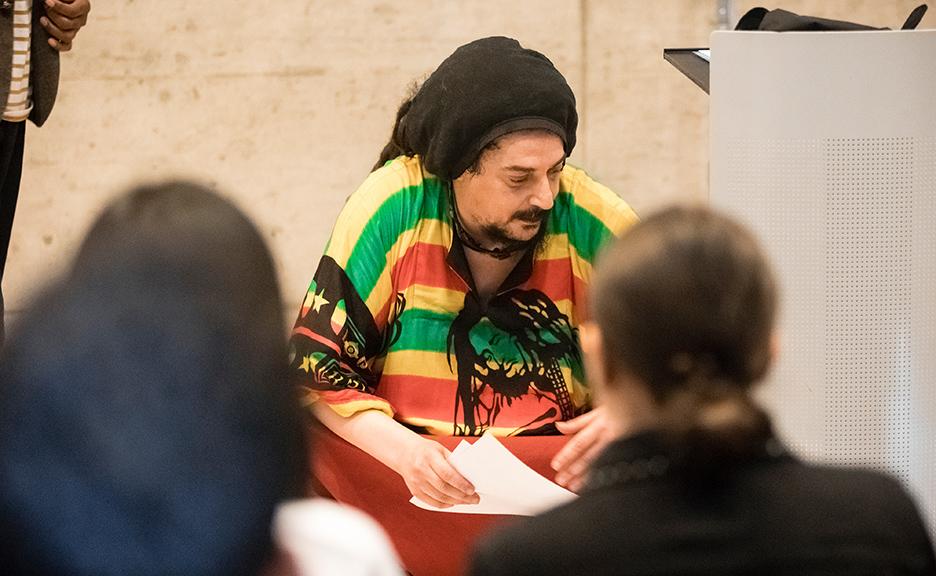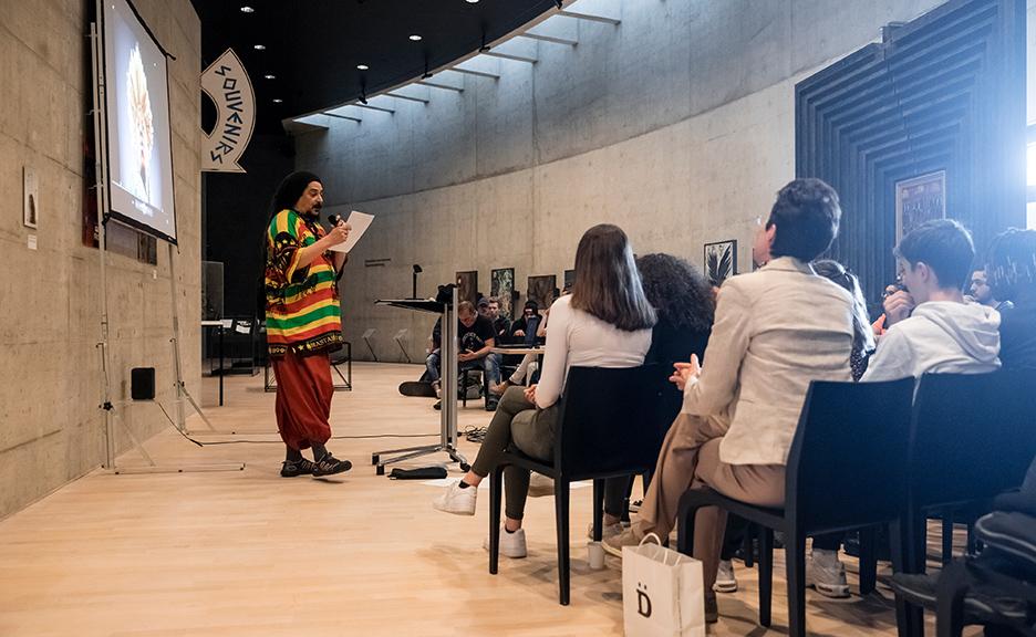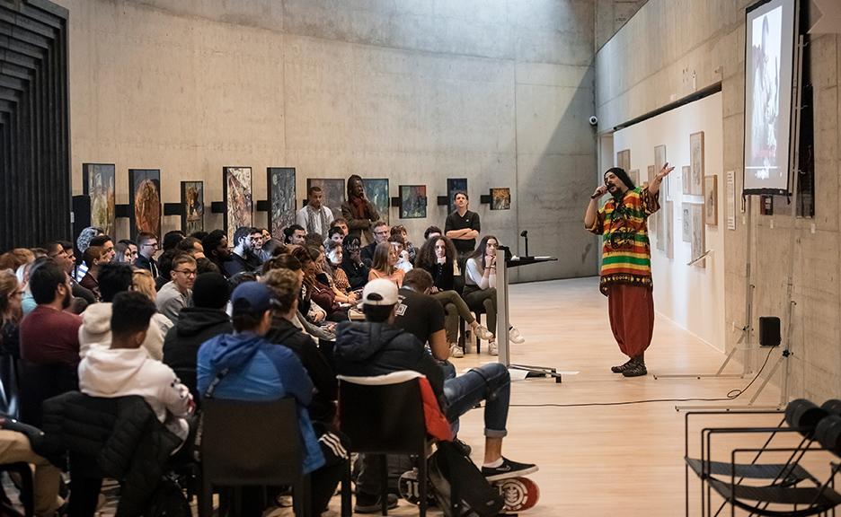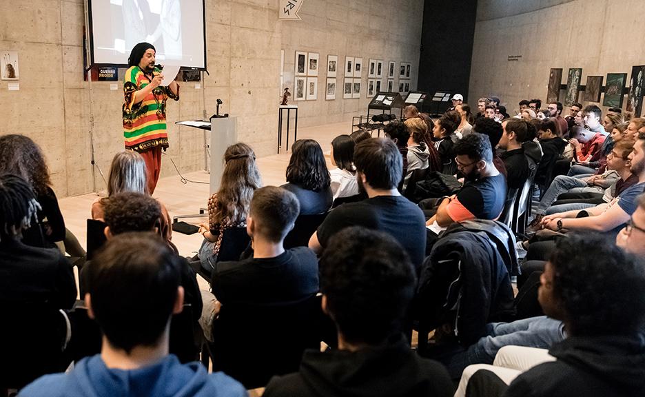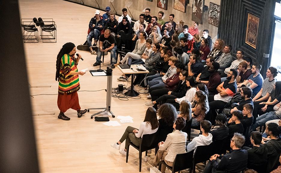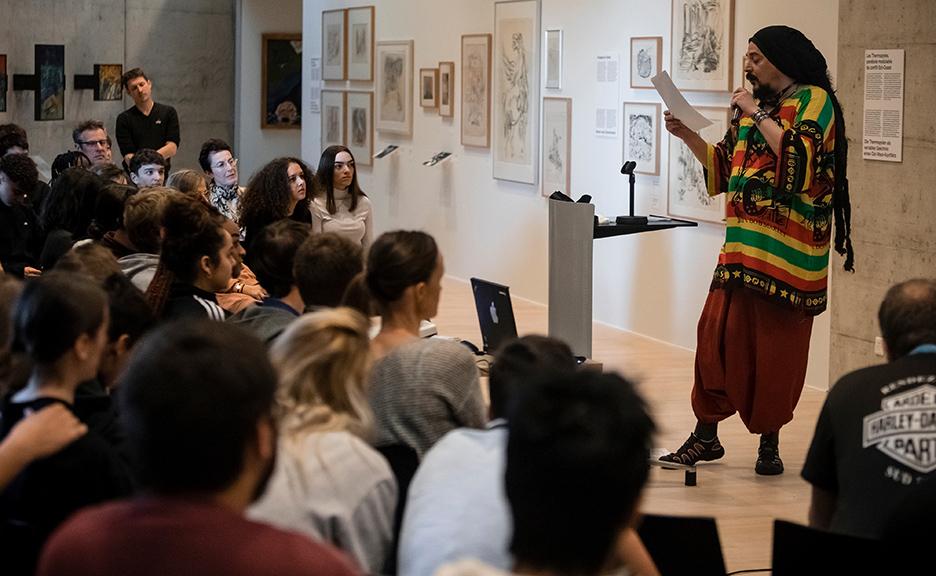 Performance en Slam de Fodil Belhadj sur le texte de Friedrich Dürrenmatt "Epidémie virale en Afrique du Sud*, présentée dans le cadre de la Semaine neuchâteloise d'actions contre le racisme 2019 au Centre Dürrenmatt Neuchâtel. Introduction de Madeleine Bestchart, directrice du CDN. Echange avec les élèves : Mutombo Kanyana, Université populaire africaine de Genève et Yannick Boillot, Pro-Juventute Neuchâtel-Arc jurassien.