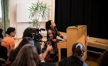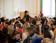 H. J. Lim, pianiste sud-coréenne, présidente d’honneur de l’association Graine de génie-citoyen, donnait une conférence au collège des Terreaux de Neuchâtel, pour toutes les classes de 9ème Harmos, le 5 novembre 2019. Devant plus d’une centaine d’élèves et durant plus d’une heure, H.J. Lim témoigna de son parcours de vie, de sa passion pour le piano et joua quelques morceaux avant de répondre aux nombreuses questions des élèves.