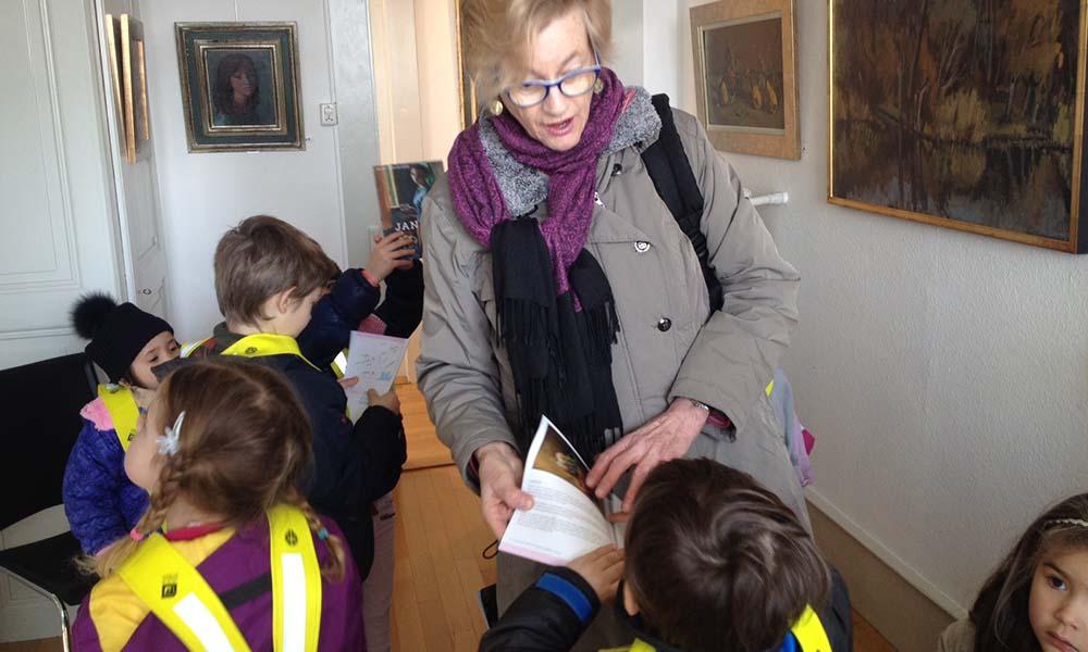 Les élèves de l'EnglishMontessori School visitent l'exposition Janebé, peintre neuchâteloise Pendant toute la seconde moitié du XXe, Janebé (1907-2000) a occupé une place majeure sur la scène artistique suisse. Elle a produit une œuvre considérable. Figures féminines, natures mortes, paysages sont des thèmes qu'elle a peints évoquant un monde rustique et une humanité sereine. Visite guidée avec Suzanne et Gérald Comtesse. Un immense merci pour leur accueil, leur disponibilité, et pour la petite collation offerte aux enfants. English Montessori School, CH-2000 Neuchâtel http://www.ateliergaleriedesparcs.ch/