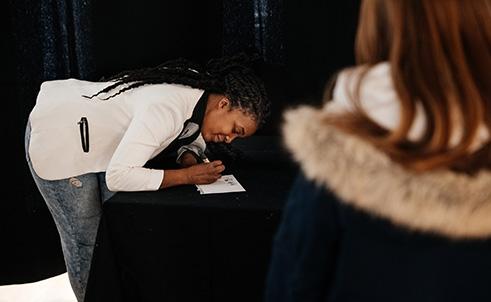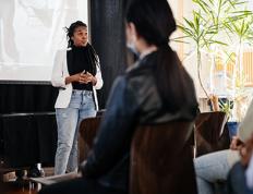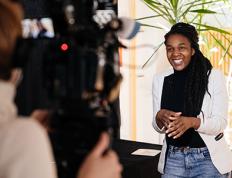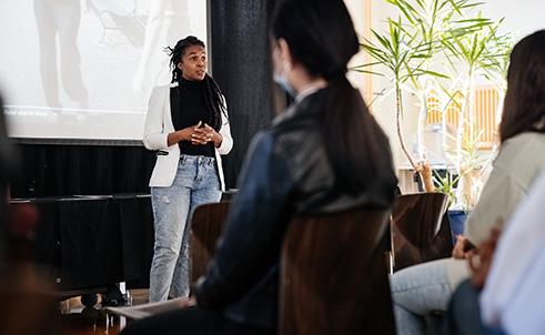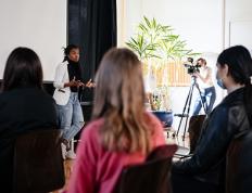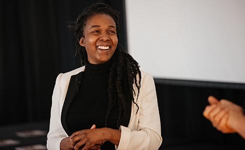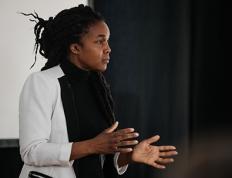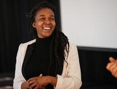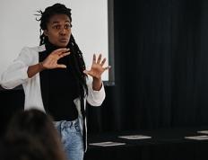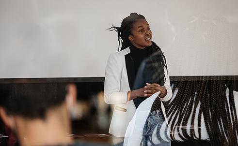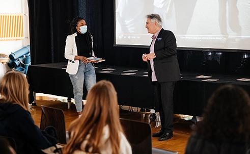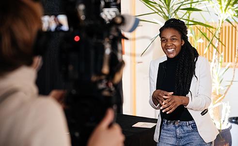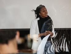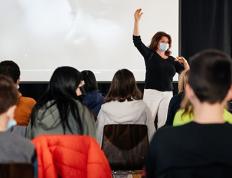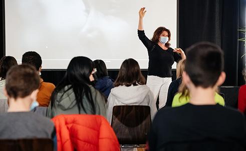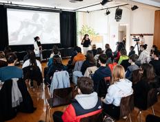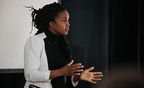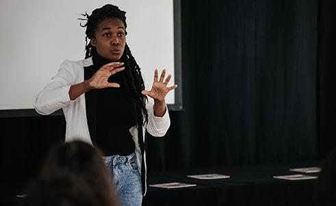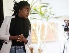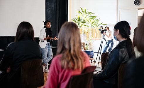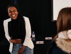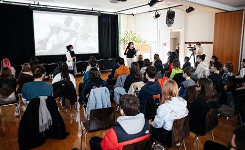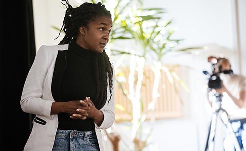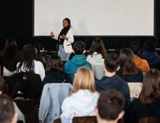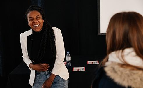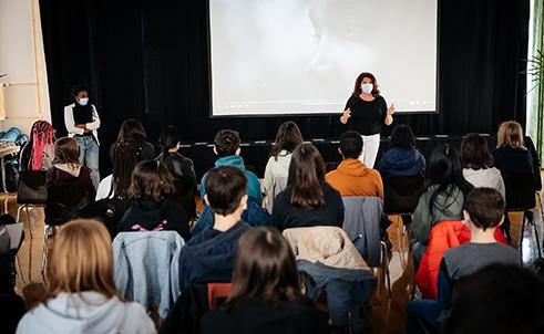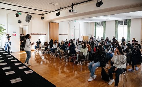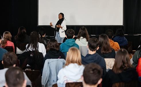 Licia Chery, marraine de la 26e édition de la semaine neuchâteloise d'action contre le racisme au collège des Terreaux, le mardi 23 mars 2021. Photos © Guillaume Perret