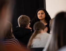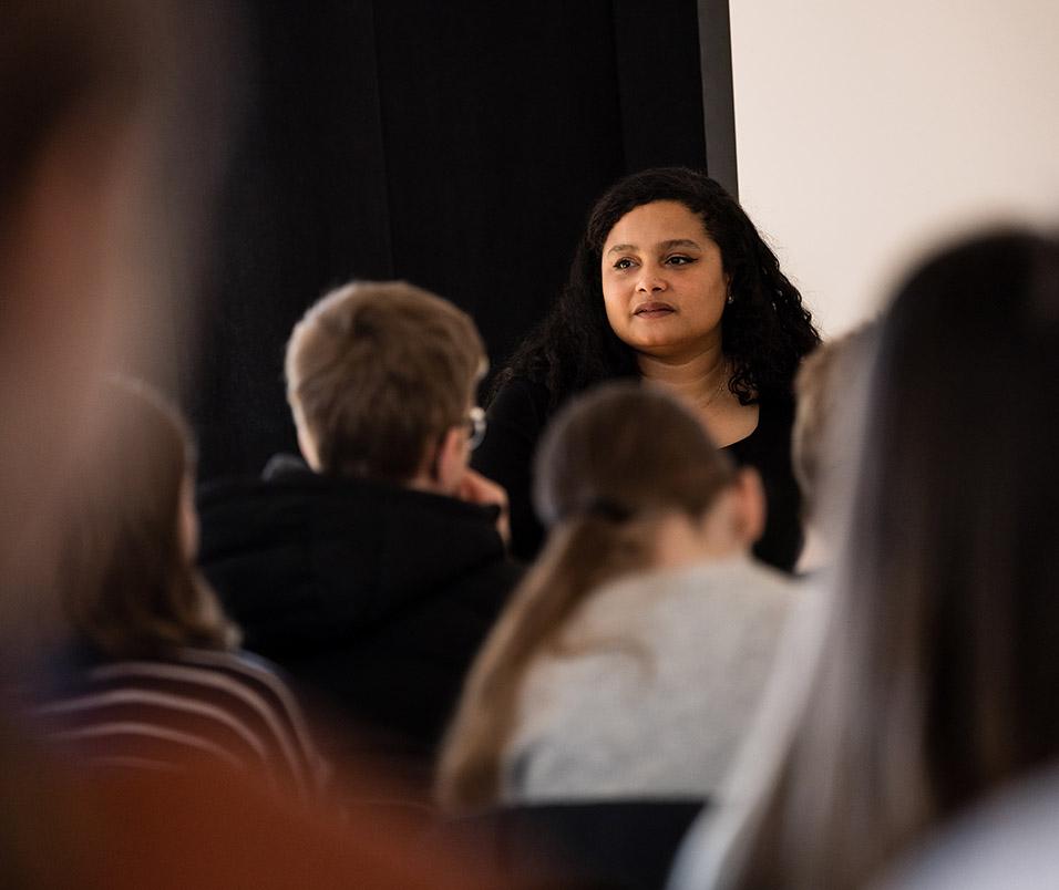 Annie Lulu à la rencontre des élèves du collège des Terreaux, pour témoigner de son parcours de vie. Le mardi 21 mars 2023. Photos@Guillaume Perret.