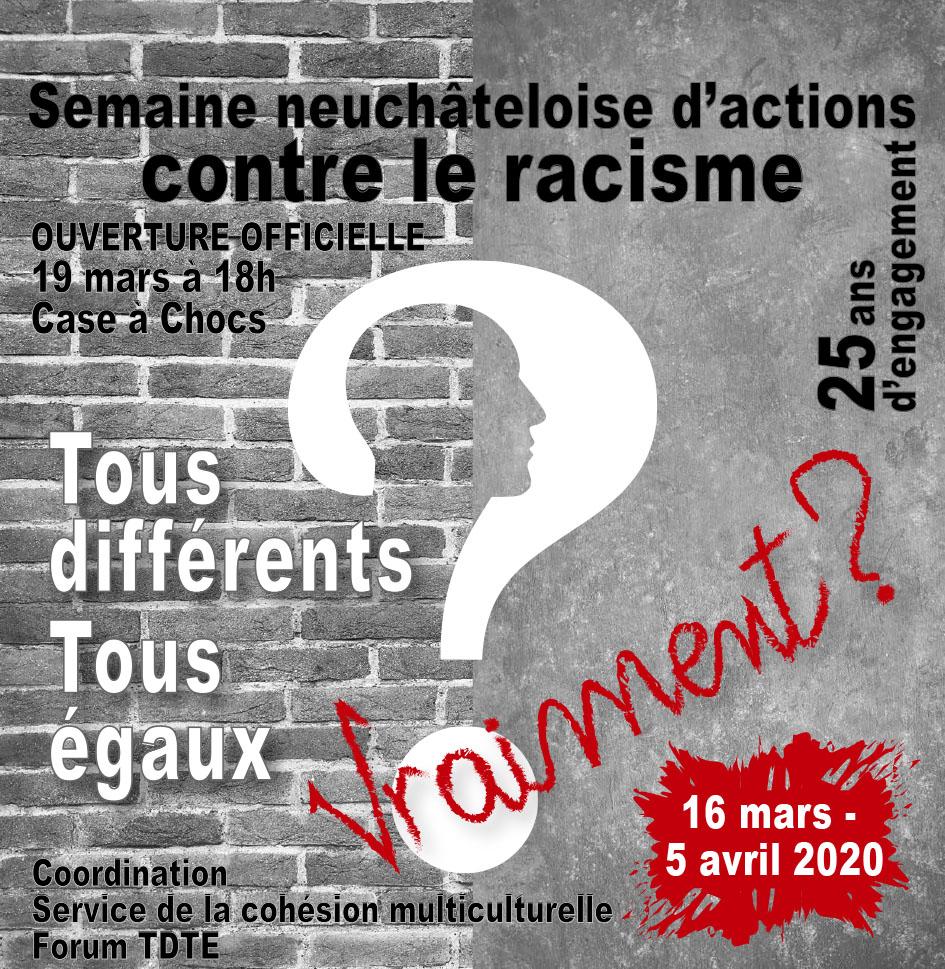 Du 16 mars au 5 avril 2020, la Semaine neuchâteloise d’actions contre le racisme (SACR) se penchera sur 25 années d’engagement en faveur de l’égalité.