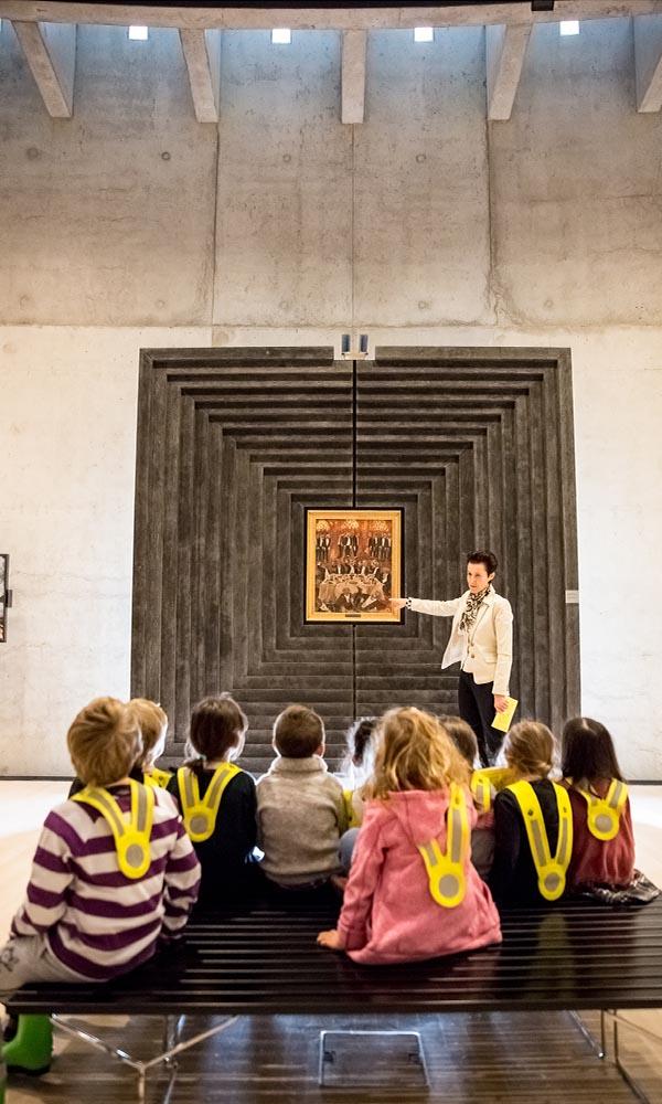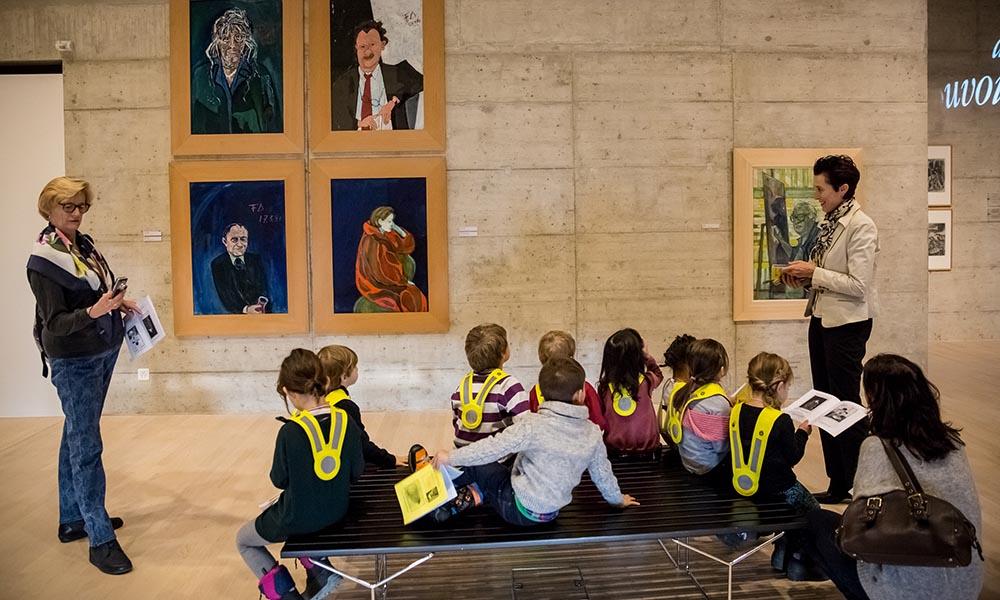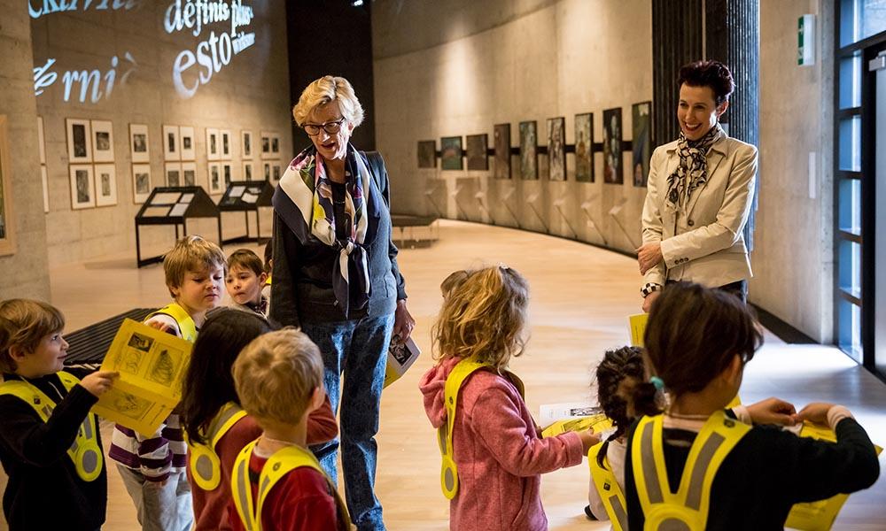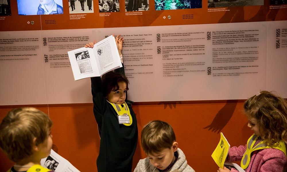 Une enseignante passionnée et enthousiaste, des enfants curieux, à la rencontre de Dürrenmatt, le vendredi 27 novembre 2015. Des enfants préparés par Elisabeth Houweling, qui avec leur fascicule en main, découvrent le CDN, posent des questions, proposent des réponses.... à Madeleine Betschart, directrice du Centre, qui a eu la gentillesse de nous accueillir.