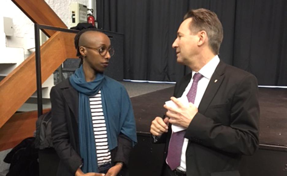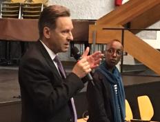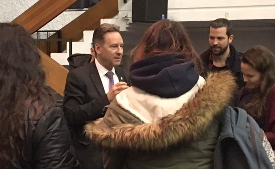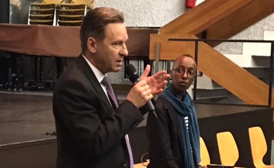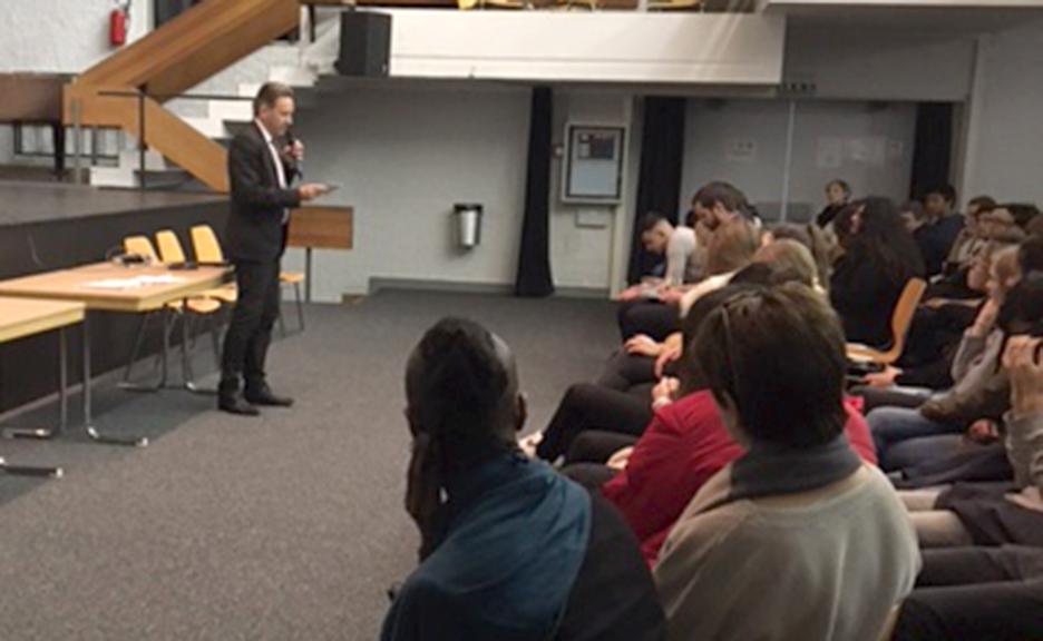 Conférence au collège du Mail, pour toutes les classes de 11e Harmos et du SEMO, durant la Semaine neuchâteloise d'actions contre le racisme, le vendredi 15 mars 2019.