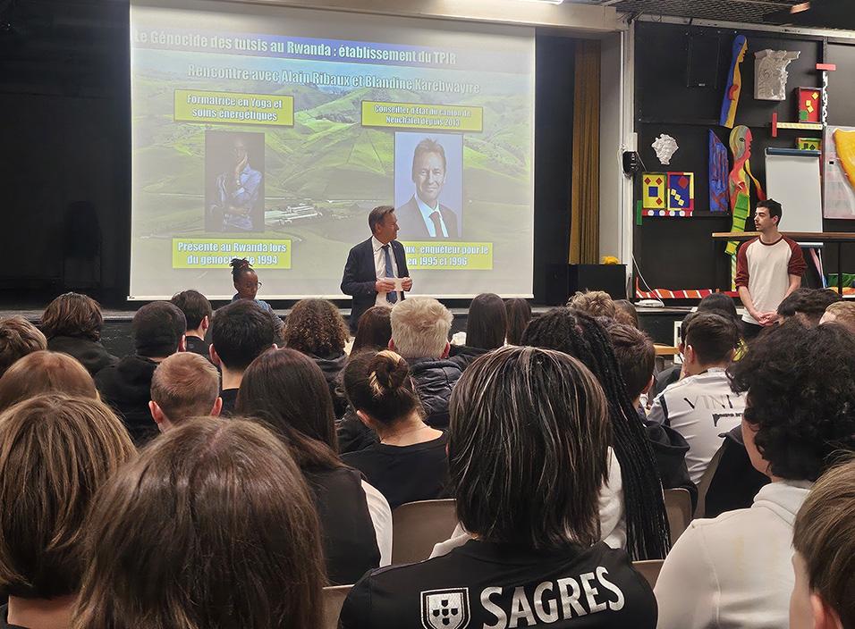 Le Locle, le 28 mars 2024. Regard croisé sur le génocide des Tutsis au Rwanda. Pour toutes les classes de 10e et 11e du collège Collège du Locle.