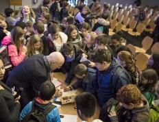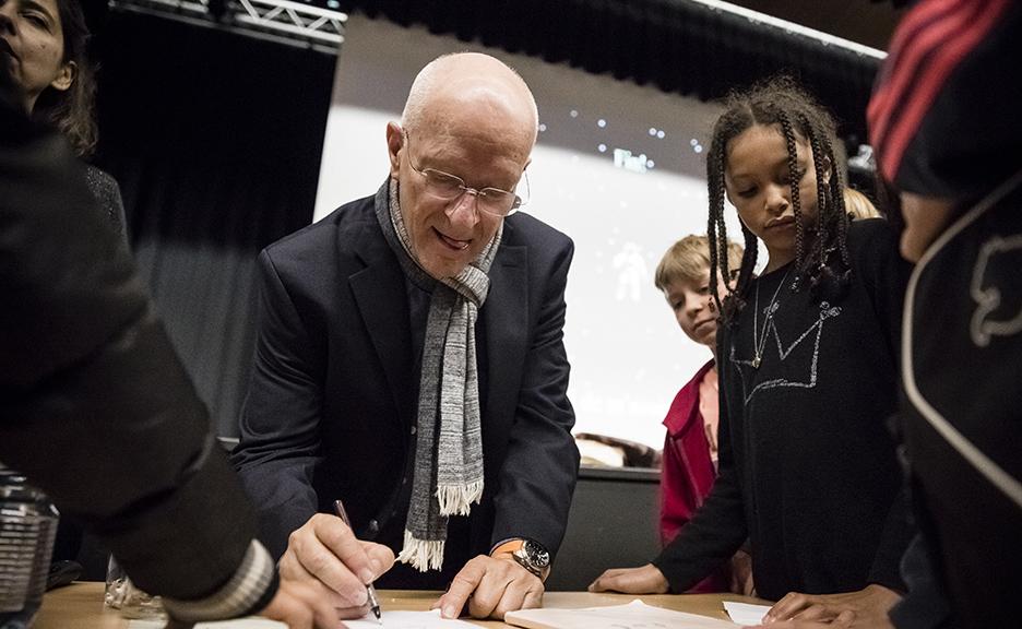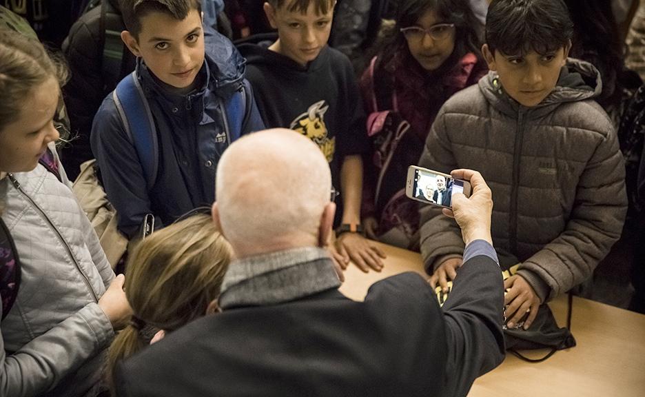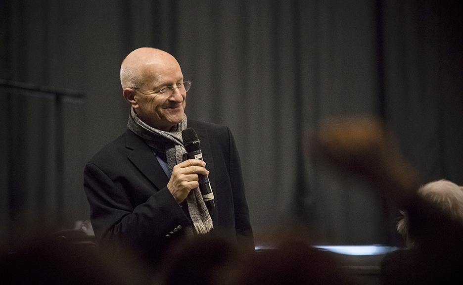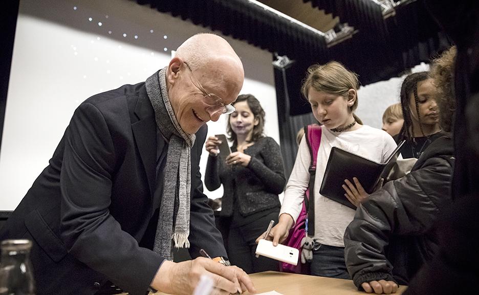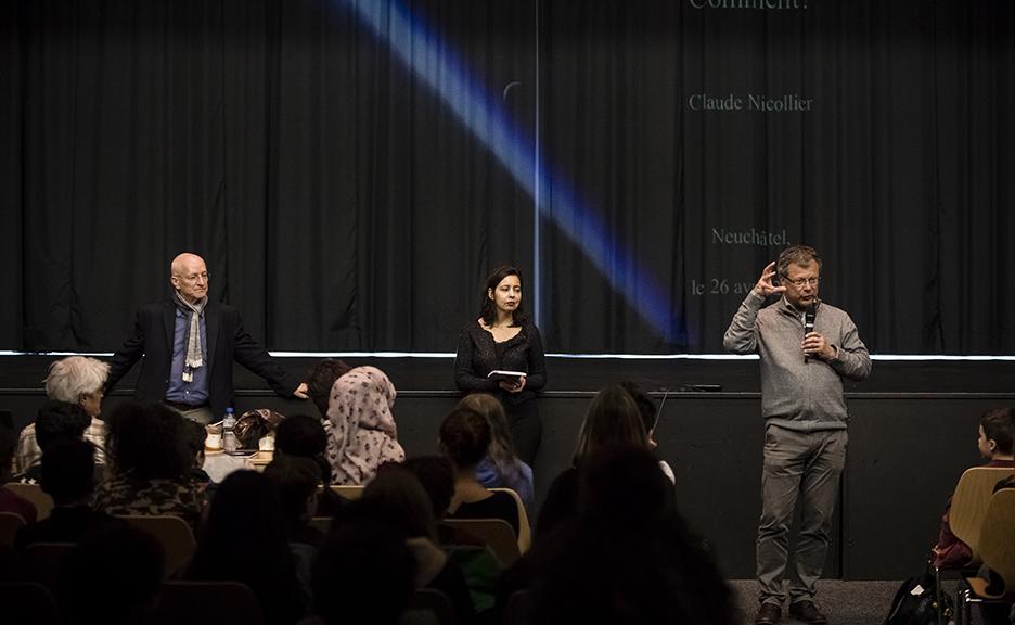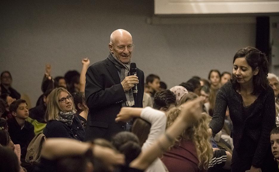 Astrophysicien et astronaute suisse, professeur honoraire EPFL. Seul astronaute suisse à être allé dans l’espace, il a effectué quatre missions à bord de différentes navettes, dont deux ont été consacrées à la réparation et à la maintenance du télescope spatial Hubble. Lors de la première mission, il était chargé du pilotage du bras télémanipulateur de la navette et à ce titre a effectué la première capture en orbite du télescope spatial. Photos. Guillaume Perret-Lundi 13 Collège du Mail, Neuchâtel, le 26 avril 2017