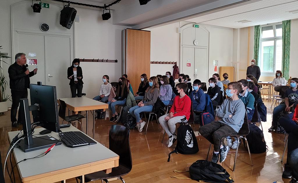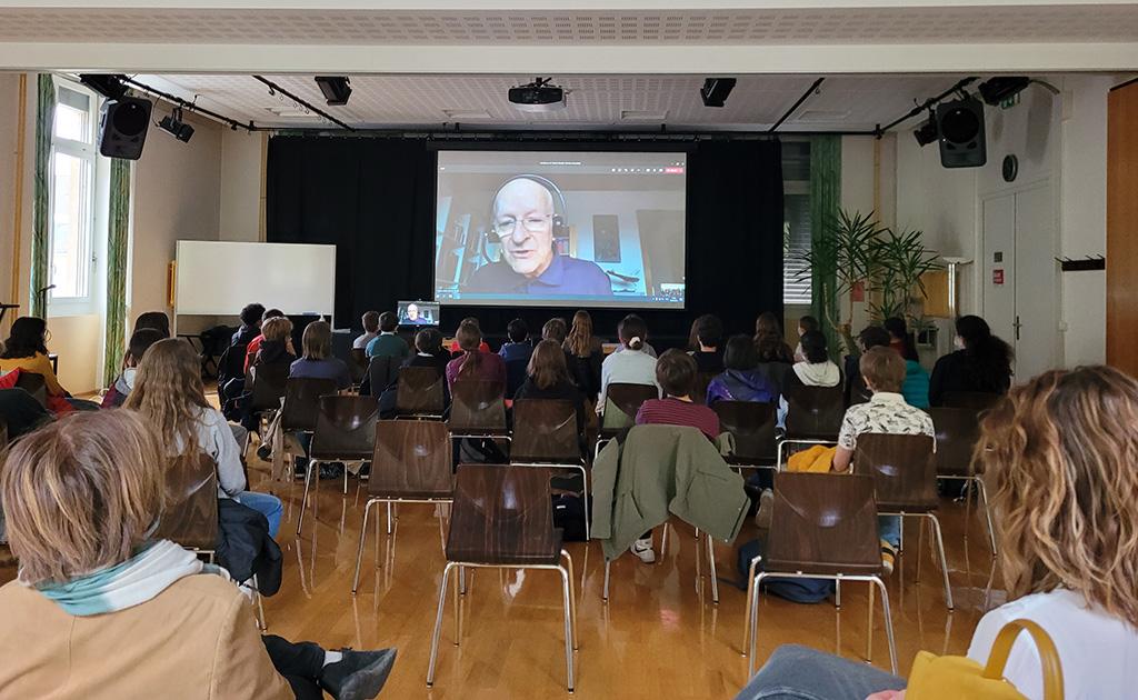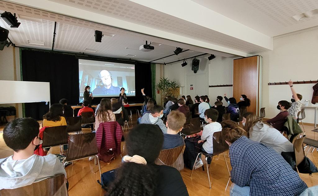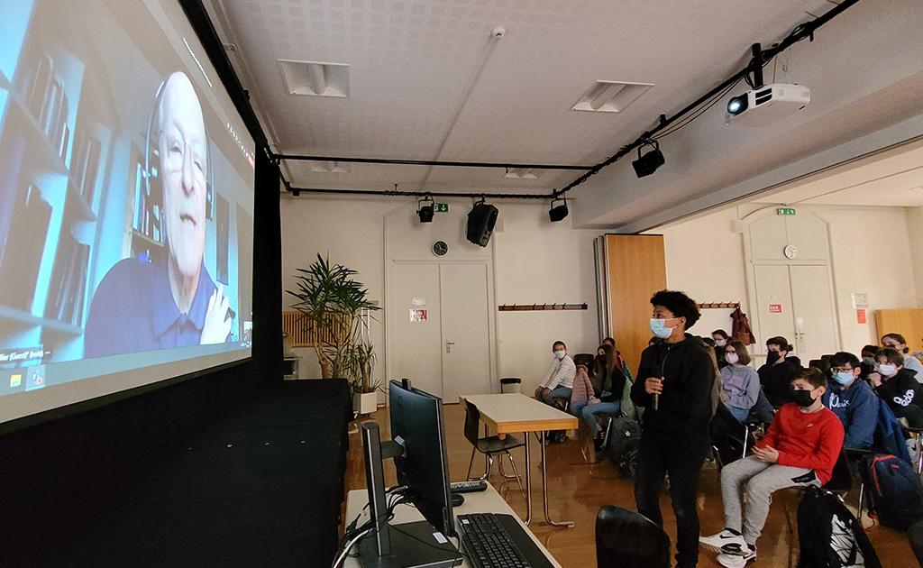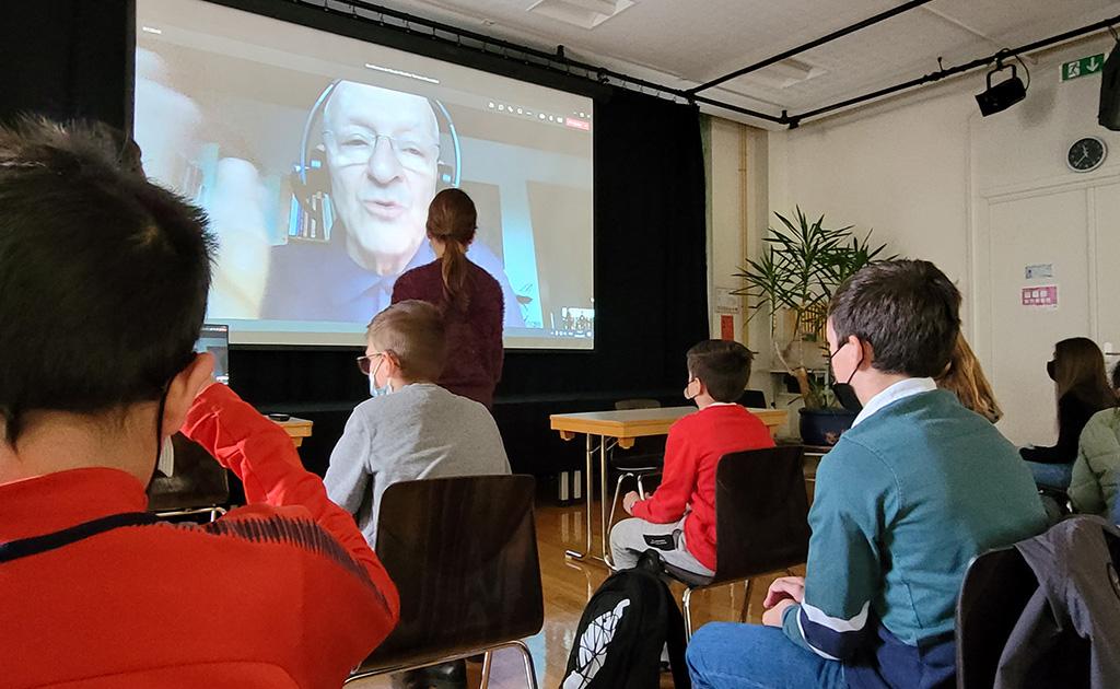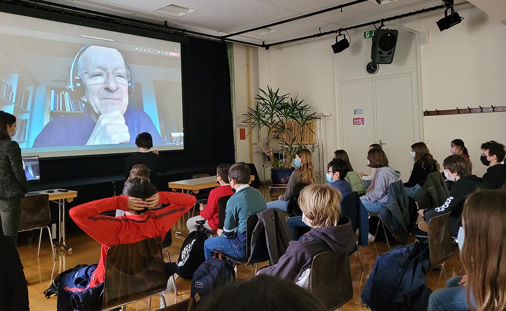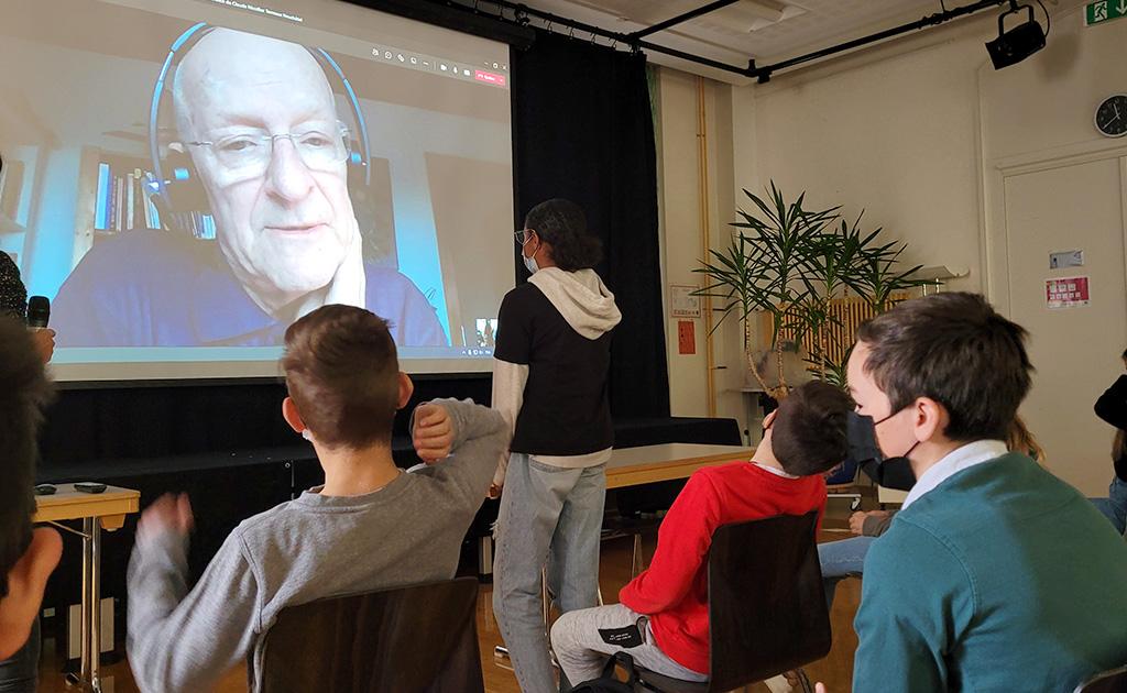 Claude Nicollier à la rencontre des élèves de 8e Harmos du collège de la Promenade, dans le cadre de la Semaine de l’Europe, le jeudi 6 Mai 2021. Cette conférence a été suivie le 11 mai par un programme proposé par la Lanterne magique au Cinéma Apollo, Salle 1 (Faubourg du Lac 21). Un voyage vers l’espace accompagné par Vincent Adatte : "Le cinéma à la conquête de l’espace", ou comment les cinéastes ont su représenter l’espace et sa conquête. Du pionnier Georges Méliès avec son célèbre «Voyage dans la Lune» (1907) à Georges Lucas («La Guerre des étoiles»), en passant par Stanley Kubrick («2001, Odyssée de l’espace», Pixar («Wall-E») et tant d’autres, nous sera conté le grand récit cinématographique de l’aventure spatiale vers «l’infini» et au-delà». Commenté, ce montage d’extraits de films emblématiques du genre sera suivi par une projection de courts-métrages d’animation «clin d’œil» sur le même thème.