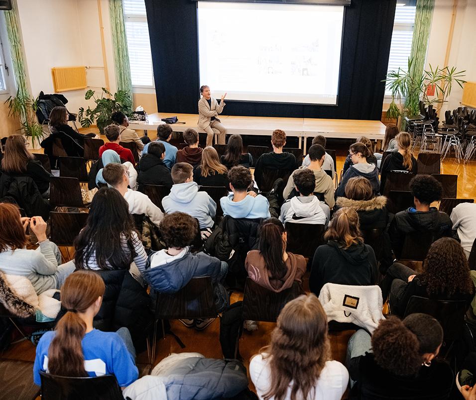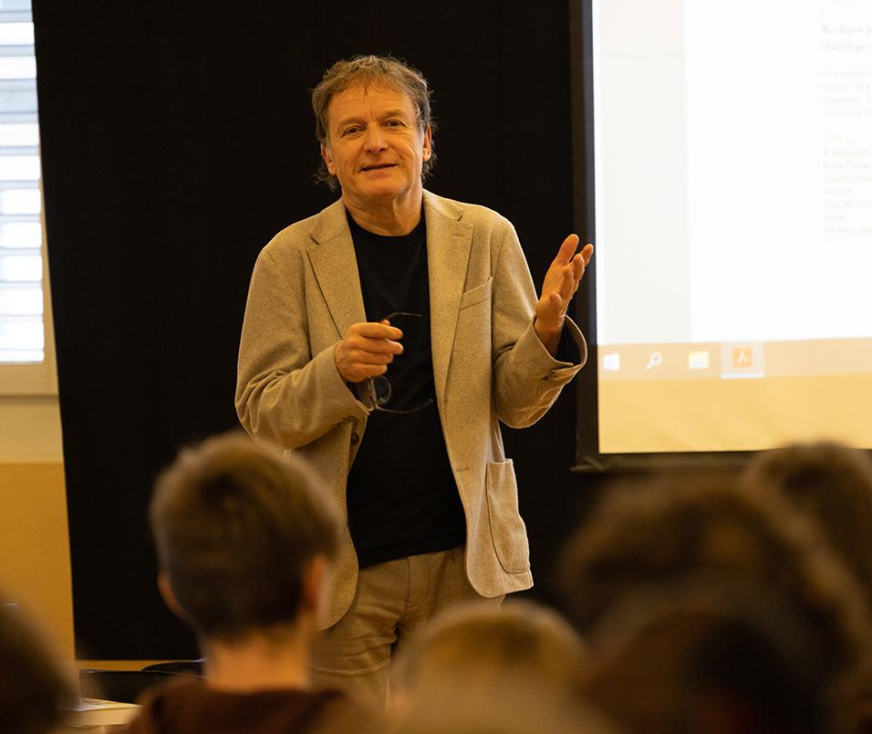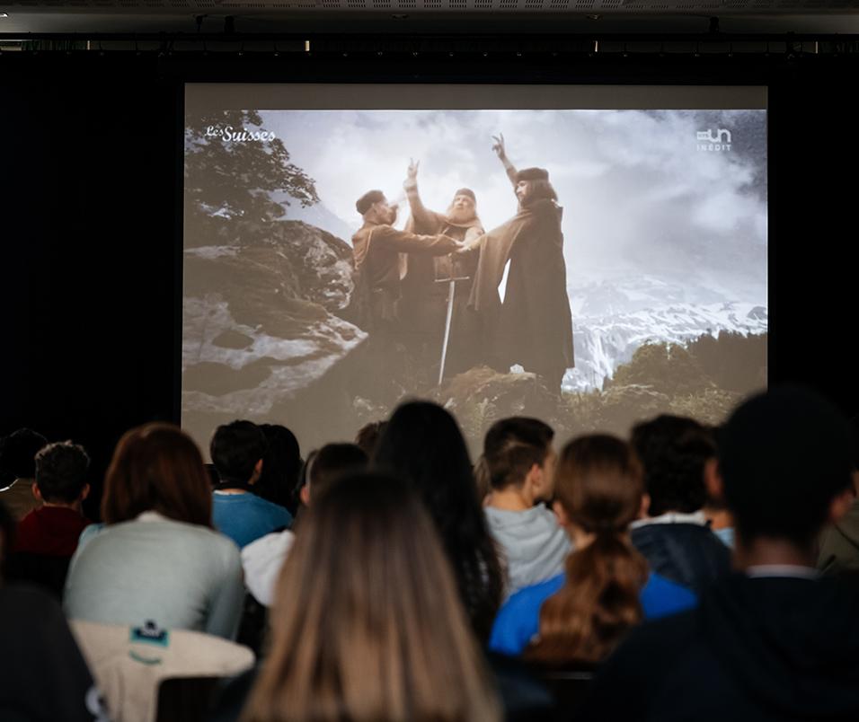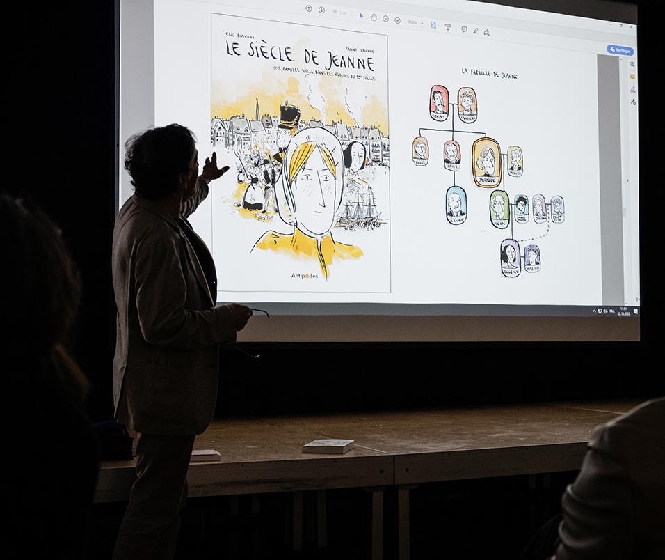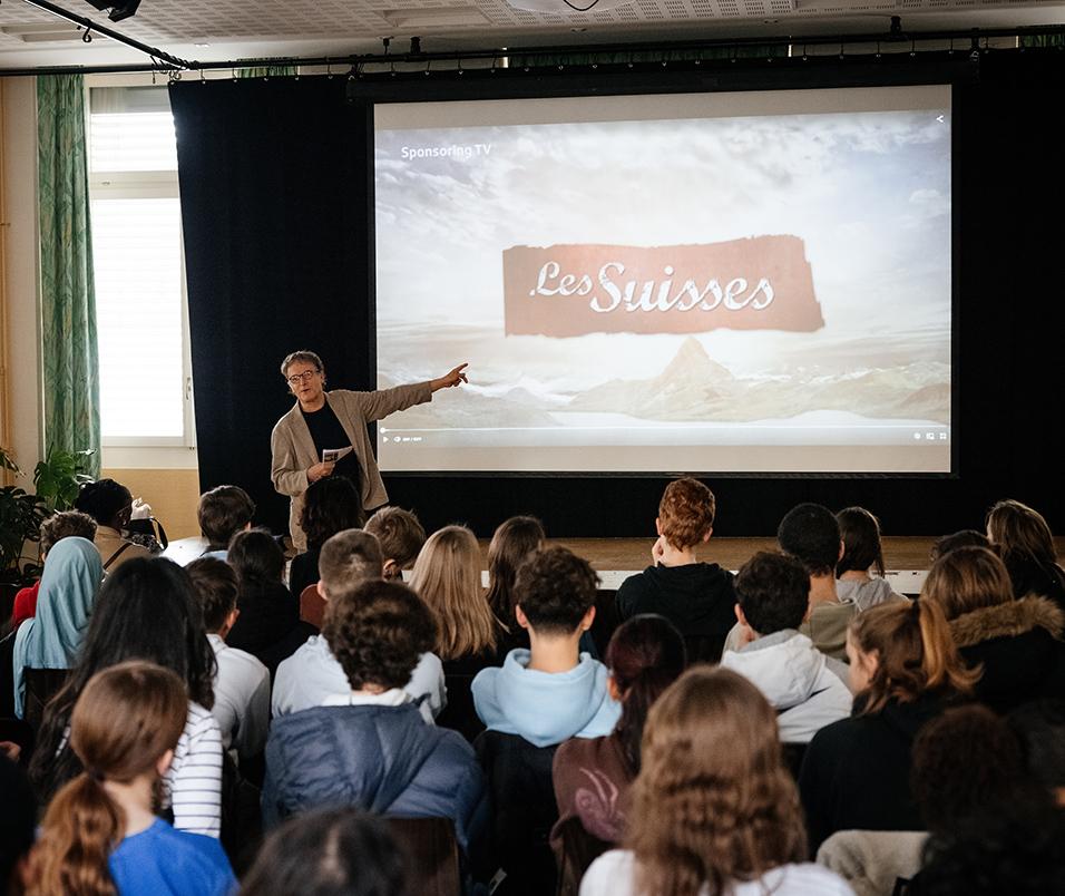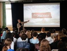 Eric Burnand, à la rencontre des collégiens et collégiennes du collège des Terreaux pour témoigner de son parcours de vie et de son métier de journaliste. Eric Burnand a présenté les deux BD qu'il a réalisées avec Fanny Vaucher "Le siècle de Jeanne" et "Le siècle d'Emma", l'histoire de la Suisse, à travers les yeux de deux femmes. Le 22 décembre 2022 - Collège des Terreaux - Neuchâtel