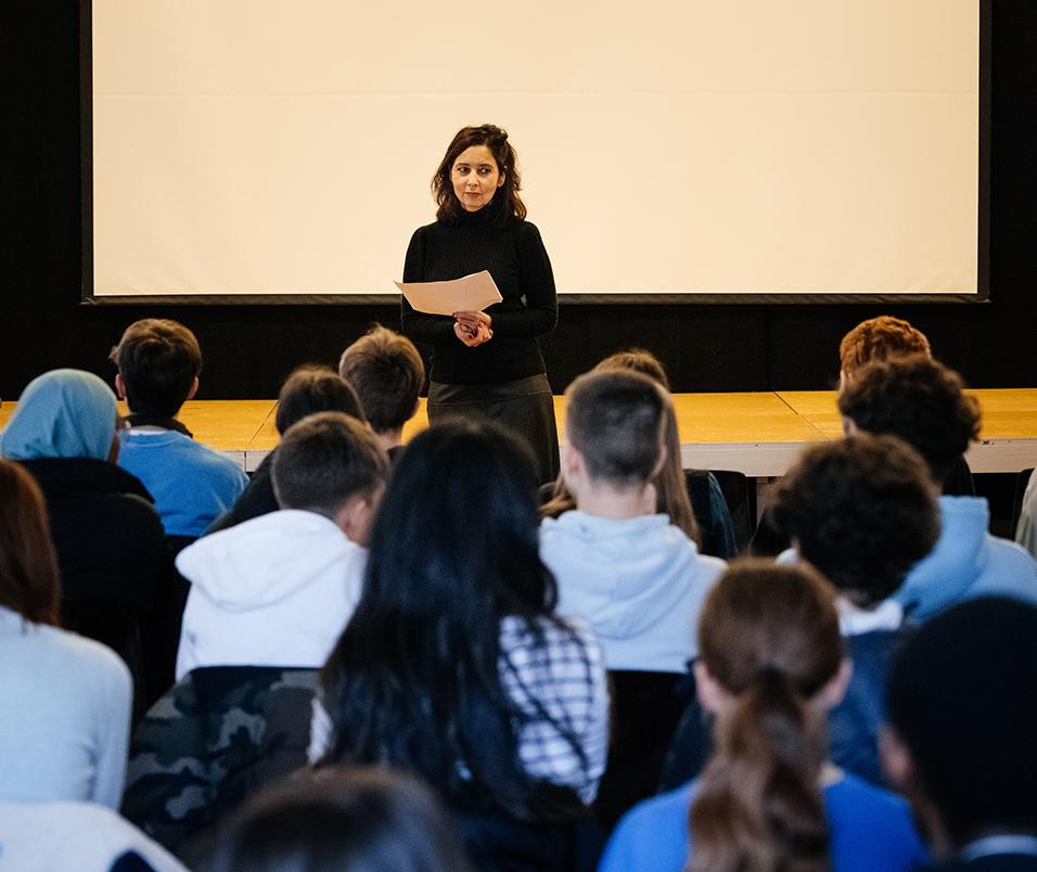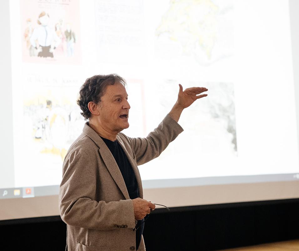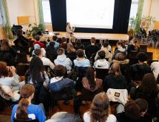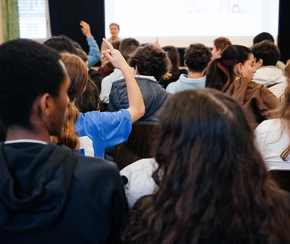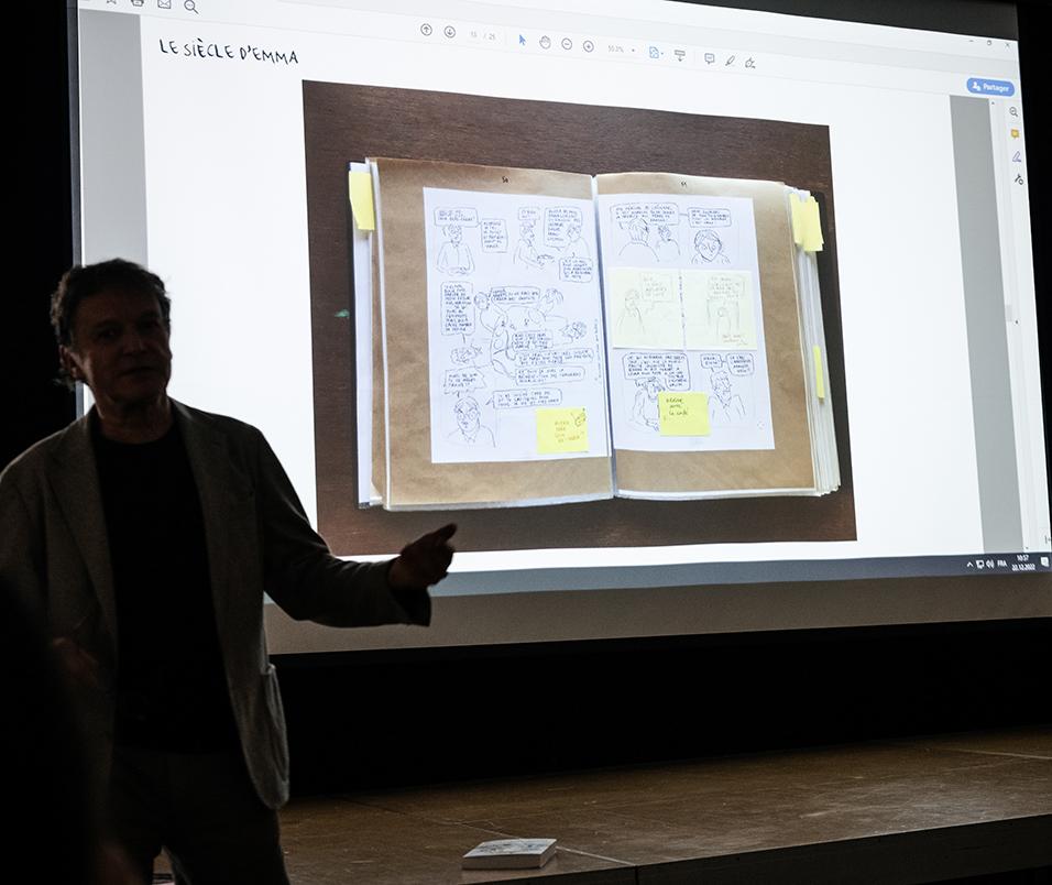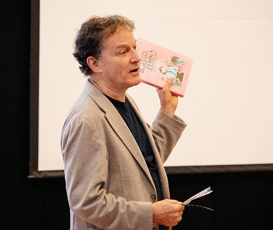 Eric Burnand, à la rencontre des collégiens et collégiennes du collège des Terreaux pour témoigner de son parcours de vie et de son métier de journaliste. Eric Burnand a présenté les deux BD qu'il a réalisées avec Fanny Vaucher "Le siècle de Jeanne" et "Le siècle d'Emma", l'histoire de la Suisse, à travers les yeux de deux femmes. Le 22 décembre 2022 - Collège des Terreaux - Neuchâtel