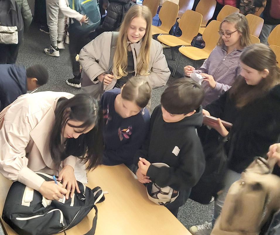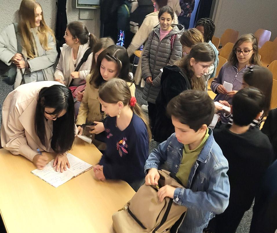 Magnifique rencontre dans le cadre de la Semaine de l’Europe, avec le Collège du Mail (classes de 7e et 8e Harmos) et le Collège de la Promenade.2 mai 2023.