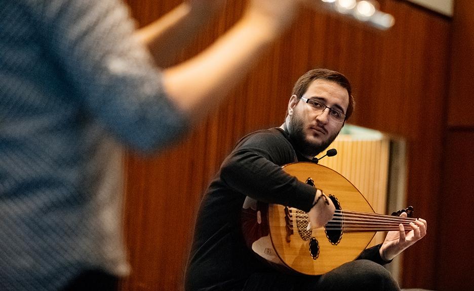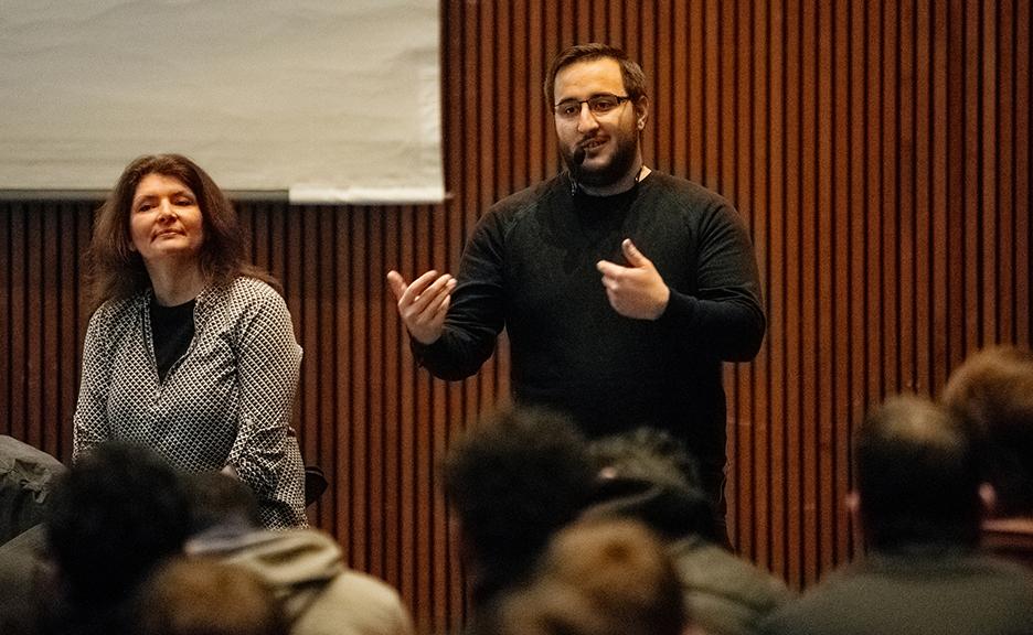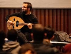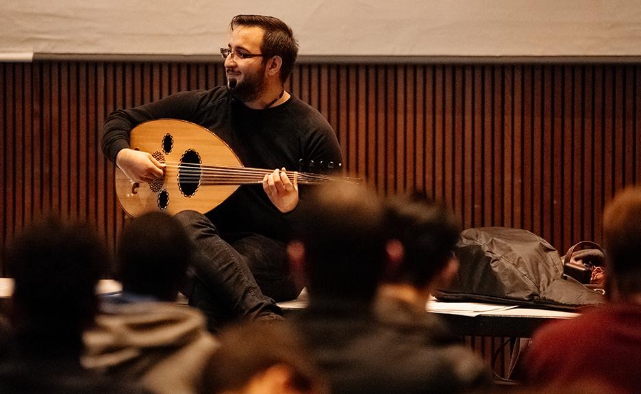 Hekmat Homsi est revenu sur son parcours de vie, son enfance en Syrie, le début de la guerre, la violence, le processus de déshumanisation et ses conséquences. Il a évoqué son arrivée en Suisse, l'installation de sa famille à Neuchâtel, son apprentissage du français, son désir de continuer la musique. il a aussi la thématique de l'altétiré et du racisme. Pour lui, le racisme c'est se sentir étranger dans le regard de l'autre, de ne me pas se sentir libre d'être soi-même, de parler sa langue, de se faire violence pour ne pas paraître celui qu'on est vraiment.
