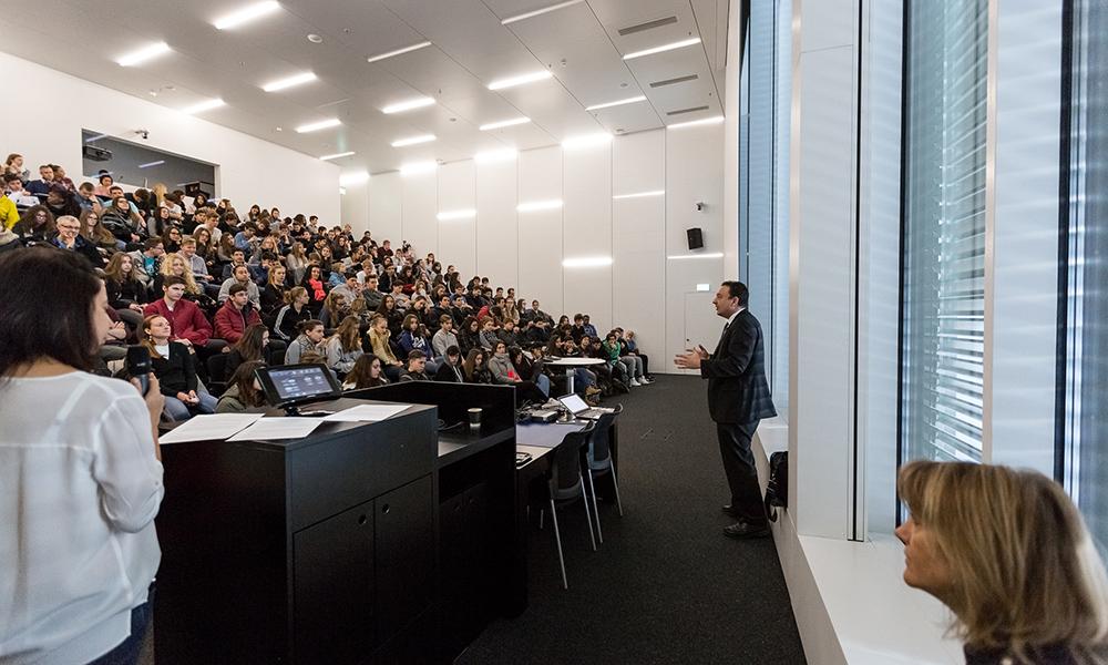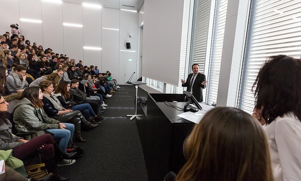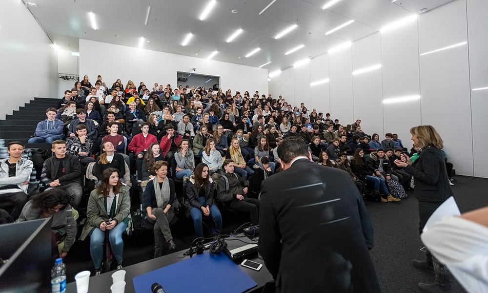 Ingénieur EPFL de formation, Conseiller d'Etat en charge de l'économie et de l'action sociale, du canton de Neuchâtel, depuis 2013, Jean-Nat Karakash a pris le temps de venir à la rencontre des élèves neuchâtelois et de partager avec eux son parcours, ses engagements et ses réflexions quant à l'avenir de notre canton: dans un monde en perpétuelle mutation, comment comprendre la société dans laquelle on évolue ? Comment imaginer son avenir ? "Osez rêver, ayez envie, croquez la vie à pleines dents. Vous êtes l'avenir de notre canton, l'avenir de notre planète."