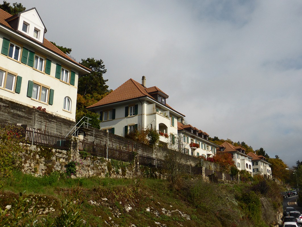 Au nord d'un modeste chemin forestier à l'est de la Roche de l'Ermitage (le bien nommé chemin des Petits-Chênes, car il jouxte une forêt de chênes rabougris, poussant sur la roche presque à nu), on construisit au début des années 1920 (architectes de Bosset et Martin) une série d’habitations destinées essentiellement aux employés des chemins de fer. Et le chemin devint rue. Par la suite, une seconde série de maisons de style identique furent construites au sud par la caisse de pensions de la Ville. Des maisons cossues, solidement implantées sur le rocher, entourées de petits potagers amoureusement entretenus par leurs habitants. Des maisons à la taille de l’homme: deux à quatre appartements chacune, avec balcon et cave. Il y avait aussi des « chambres hautes » : vu le revenu modeste des habitants, on ne pouvait décemment pas les qualifier de « chambres de bonnes » ! Ces pièces mansardées étaient les hauts lieux de nos jeux enfantins : quel endroit idéal pour installer un train électrique !