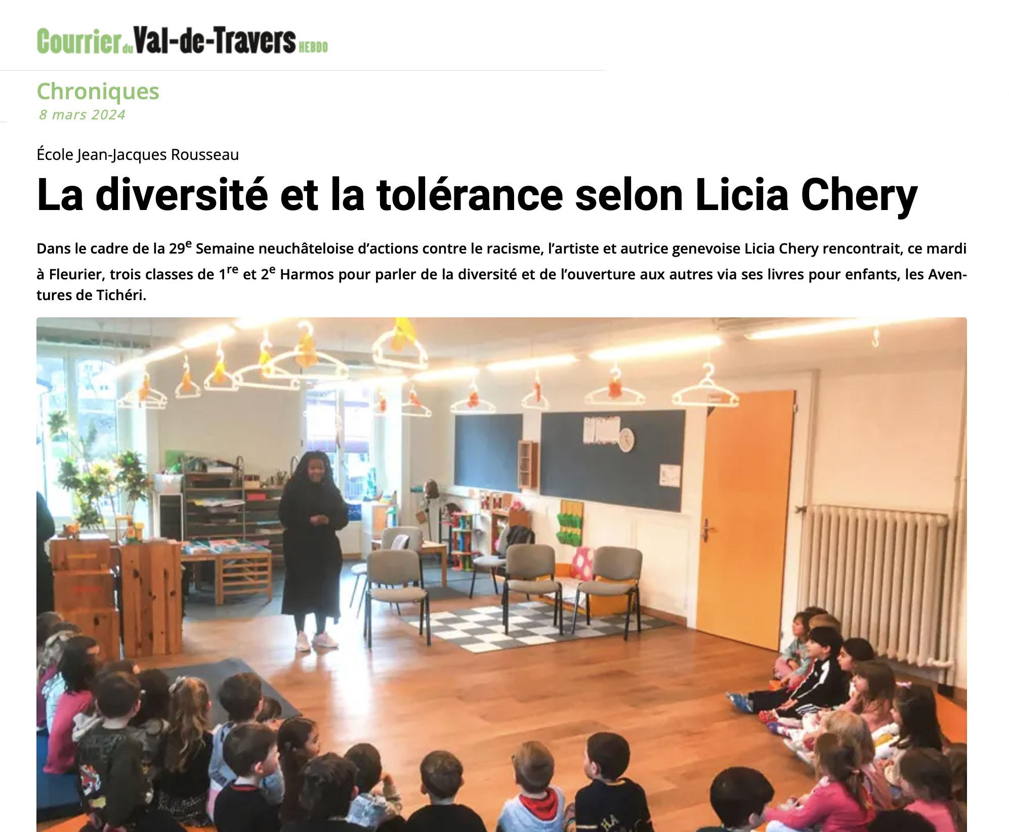 Mardi 5 mars 2024 - Licia Chery, à l'école enfantine de Fleurier.