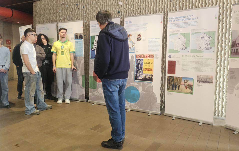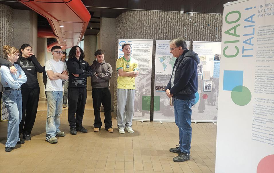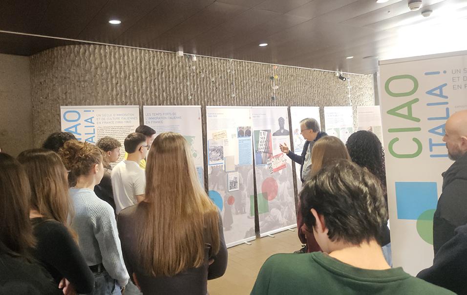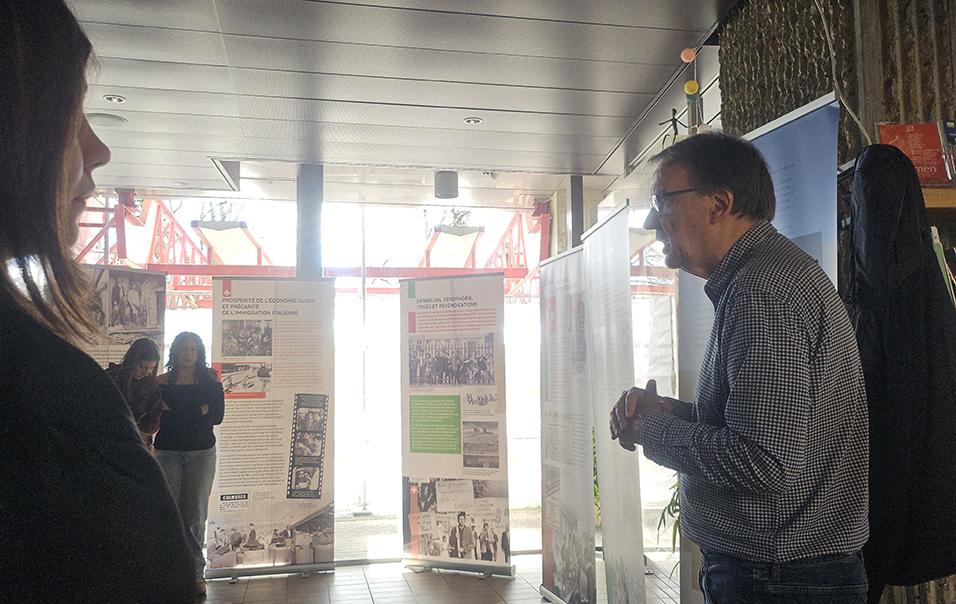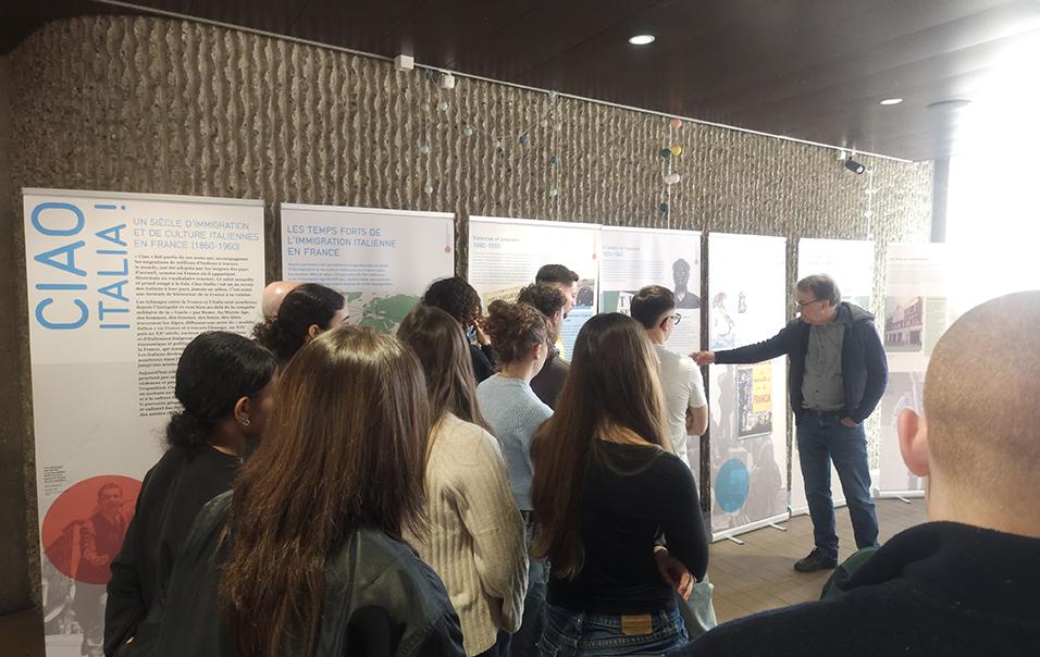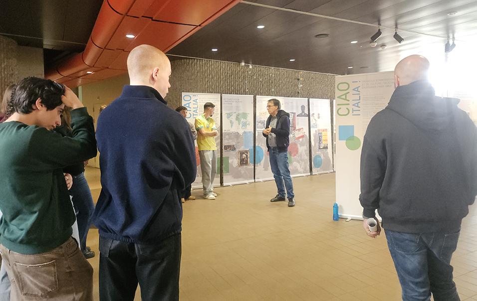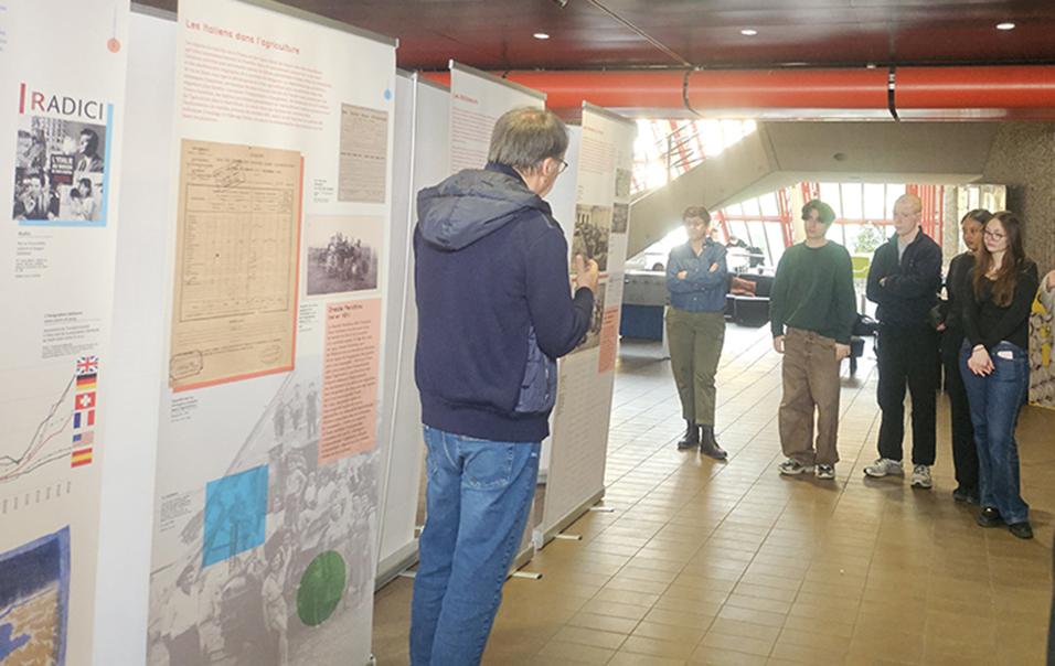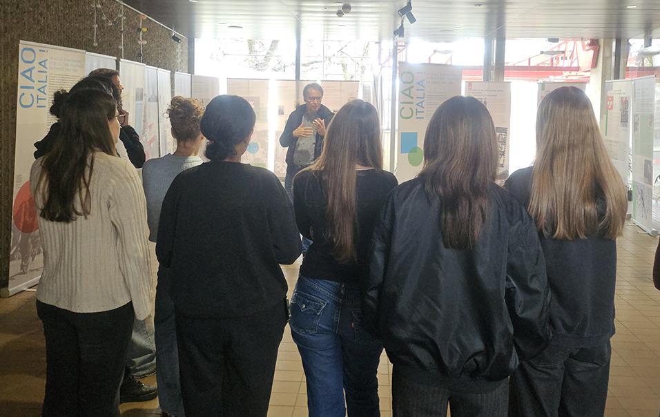 24 mars 2025. Aujourd'hui l’historien Marc Perrenoud a proposé une visite commentée de l’exposition "Ciao Italia" aux élèves du lycée Jean-Piaget, grâce à l’association Génie Citoyen. Cette conférence s’inscrit dans le cadre de la Semaine neuchâteloise d’actions contre le racisme.
