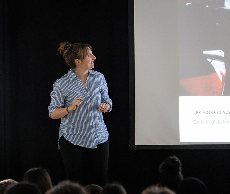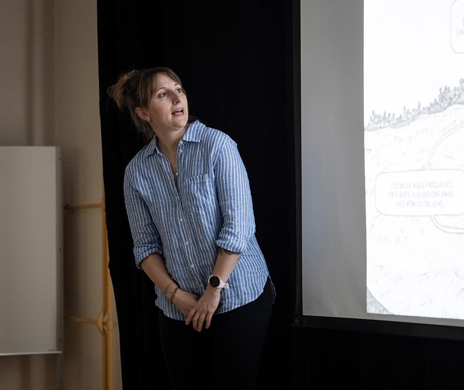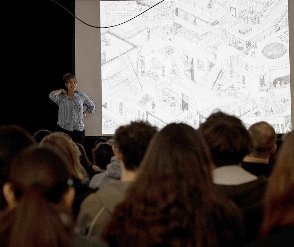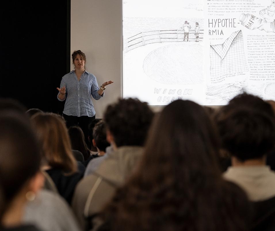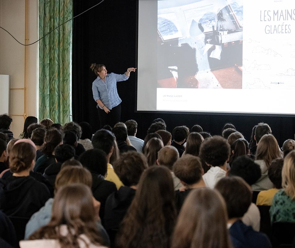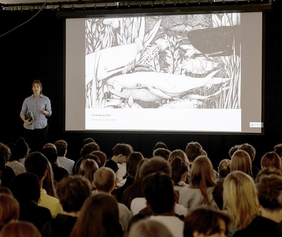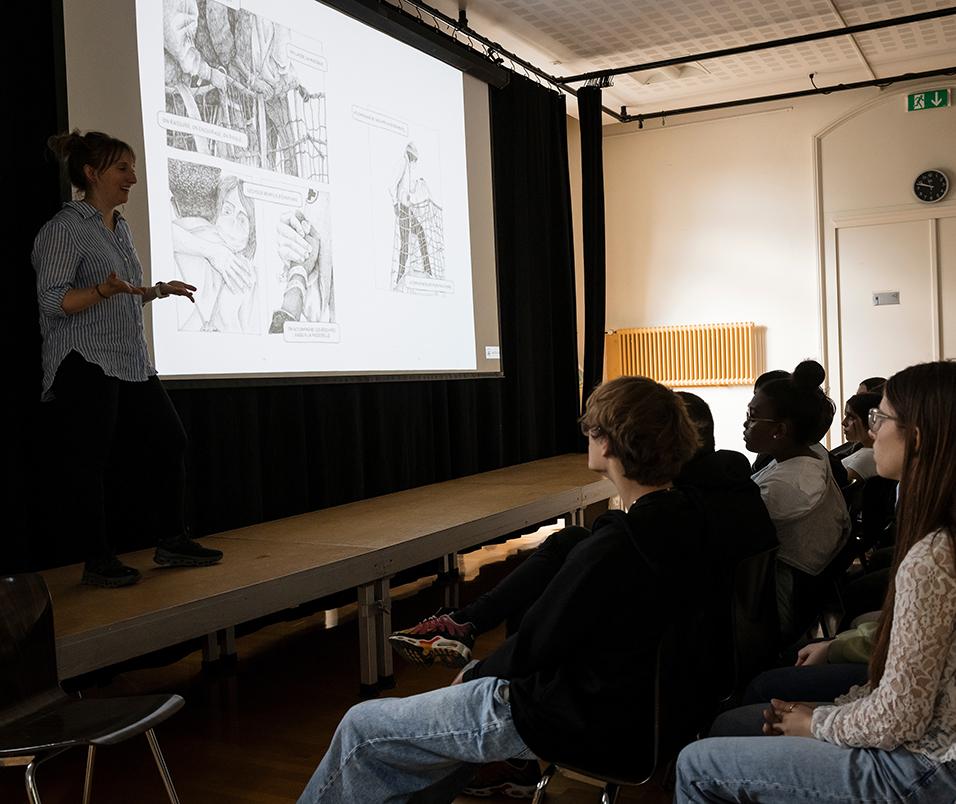 7.5. Dans le cadre des Journées de l’Europe 2025, Marie-Morgane Adatte était invitée par l'association Génie-Citoyen pour une présentation de sa BD Pied à terre au collège des Terreaux.