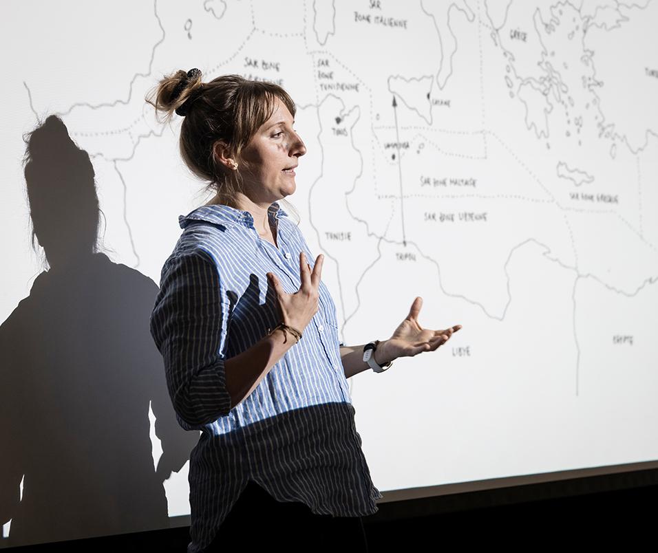 Plus récemment, elle a embarqué en 2023 sur le navire humanitaire Ocean Viking de SOS Méditerranée, documentant cette mission de sauvetage dans l’ouvrage Pied-à-terre (Antipodes, 2024), une œuvre poignante sur les migrations en Méditerranée. Photos de Guillaume Perret.