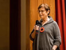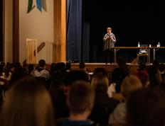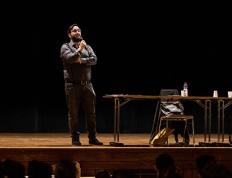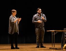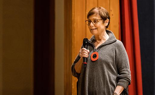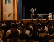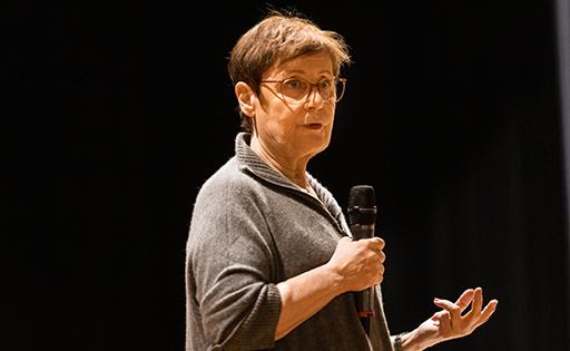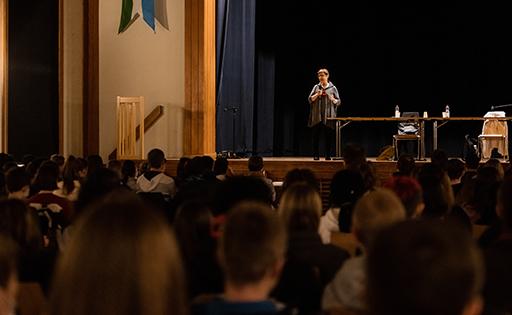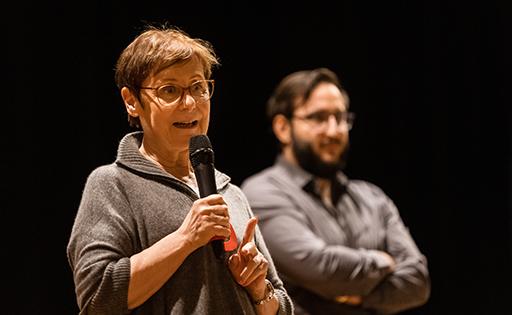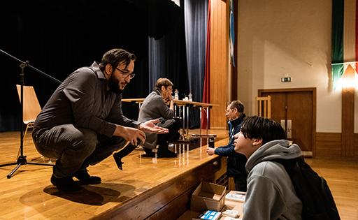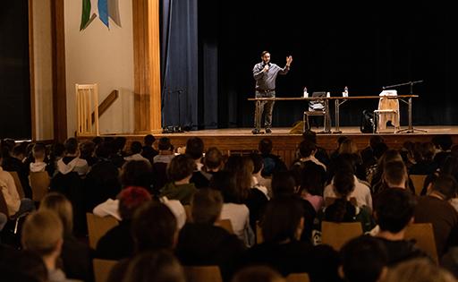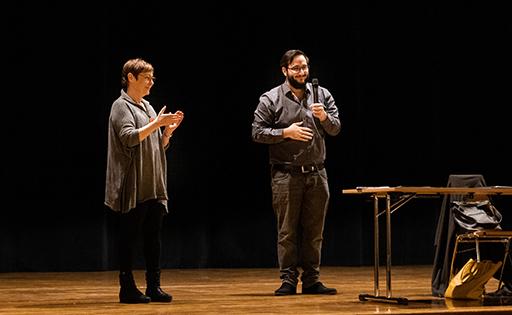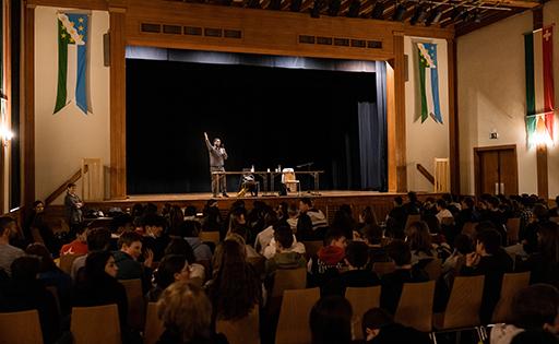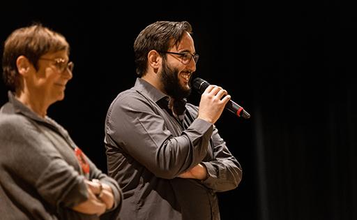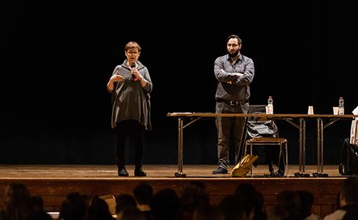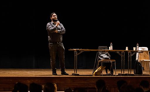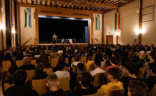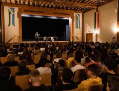 Martine Brunschwig-Graf, présidente de la Commission fédérale contre le racisme a fait un état des lieux du racisme et des discriminations en Suisse et a rappelé combien «Il est important de ne jamais laisser penser que la voix du racisme est dominante». Sa conférence était suivie du témoignage d’Hekmat Homsi, musicien syrien, qui s'est exprimé sur les raisons de l’exil et sur son parcours de vie. Collège Jean-Jacques Rousseau-Fleurier. Le 23 mars 2022. Photos © Guillaume Perret