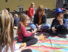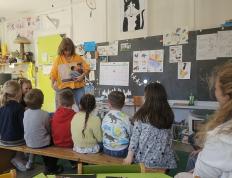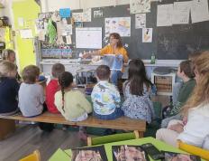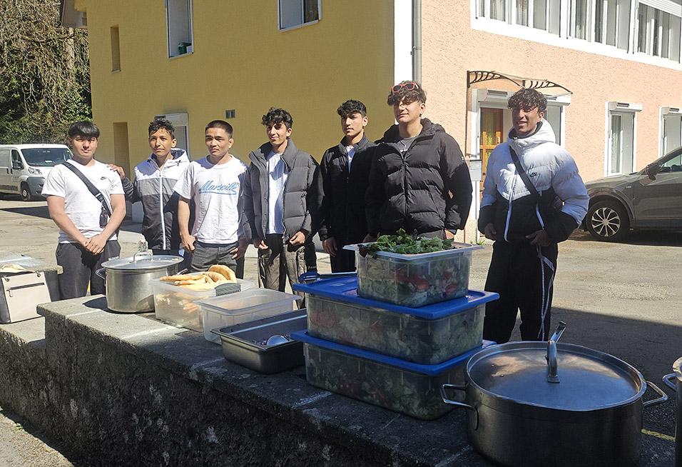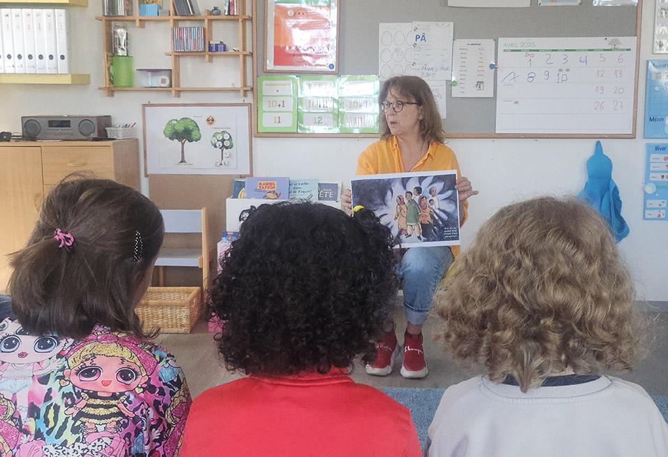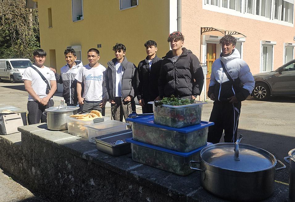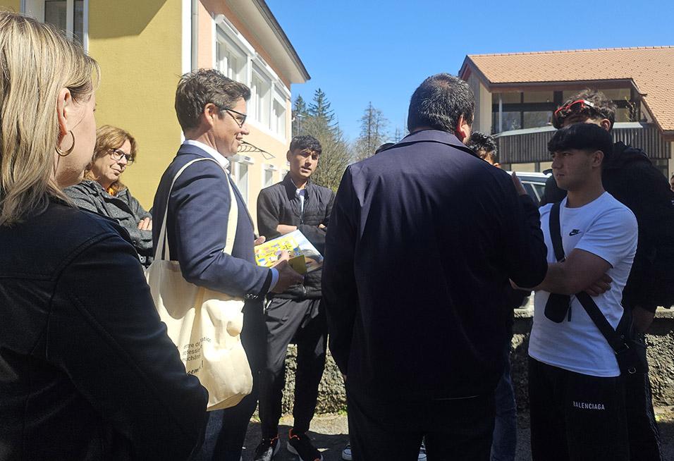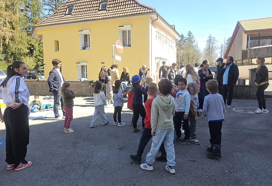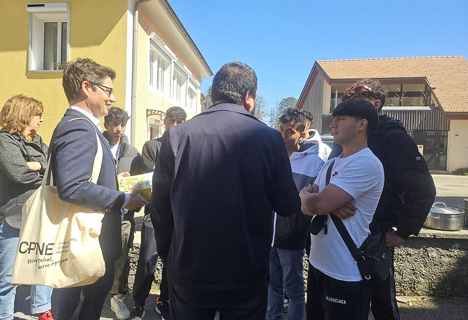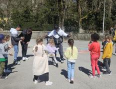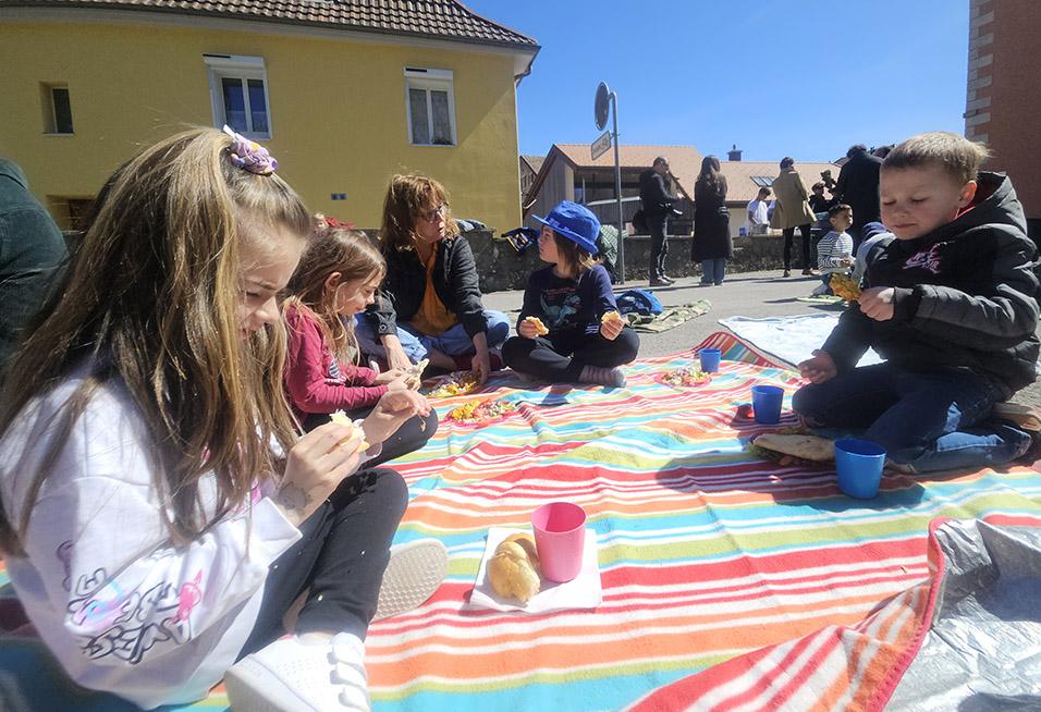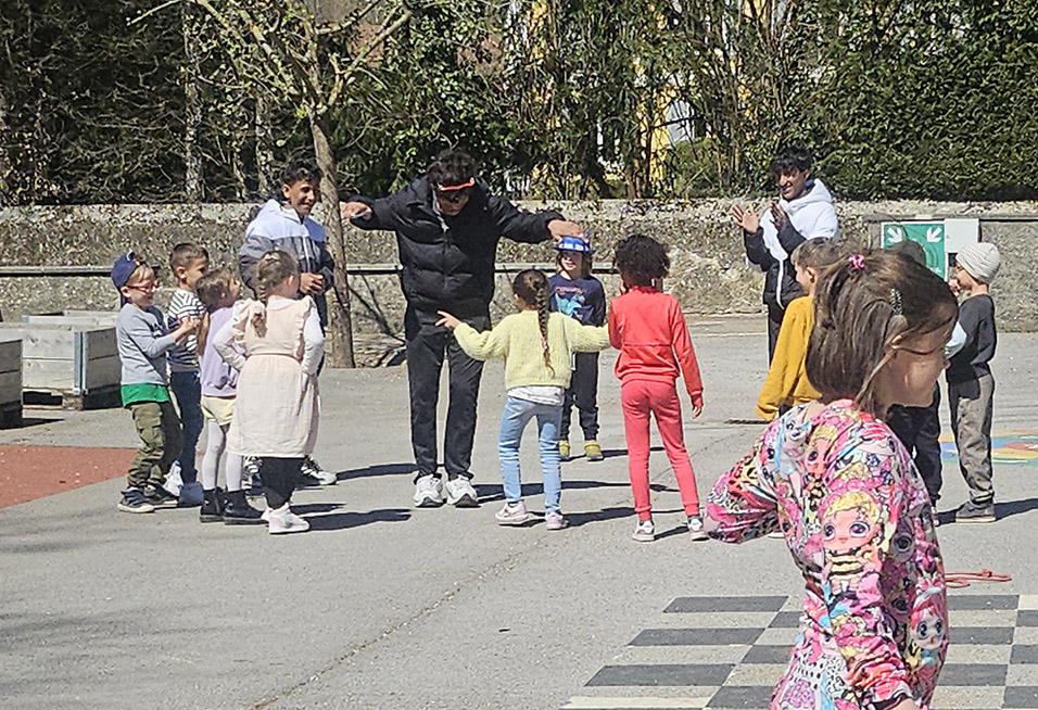 Jeudi 10 avril. Les élèves du Collège du Temple Fleurier rencontrent Mary Wenker autour du livre Hasan venu d'ailleurs. 3 Classes des enfants de 5e et 6e HP se montrent très intéressés par cet échange. La rencontre est suivie d'un repas aux saveurs afghanes, dégusté sur des couvertures installées dans la cour de l'école.