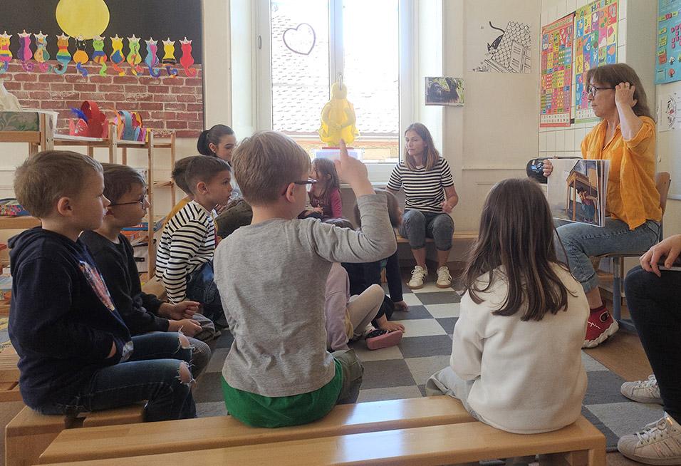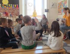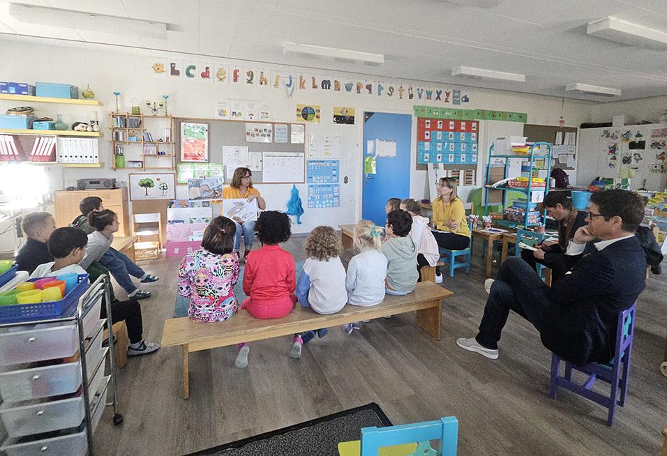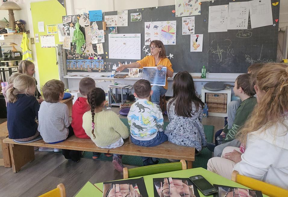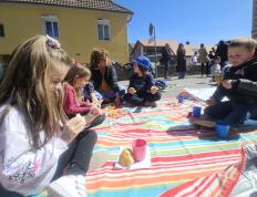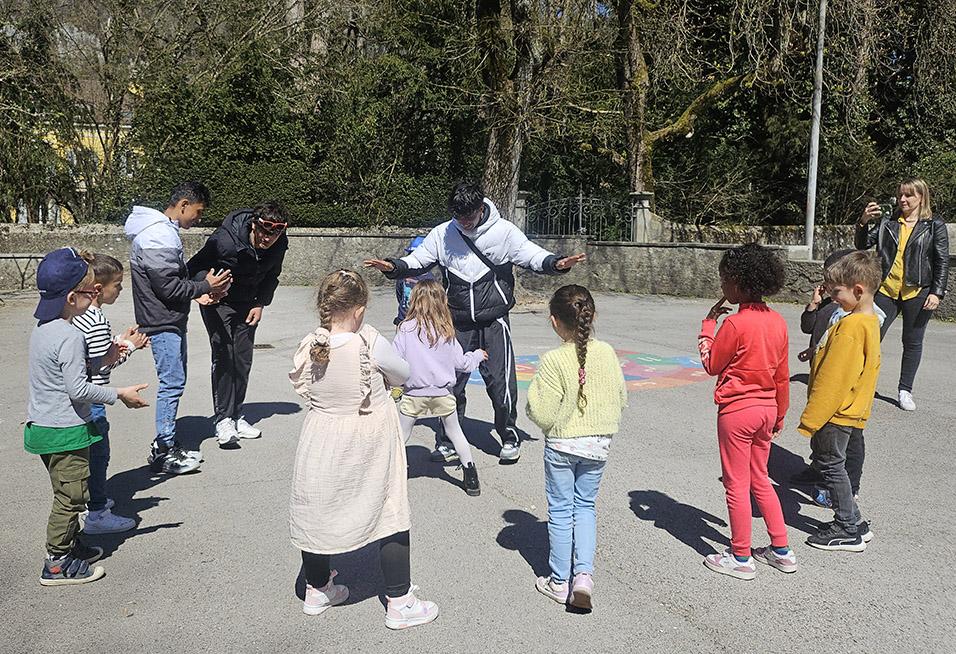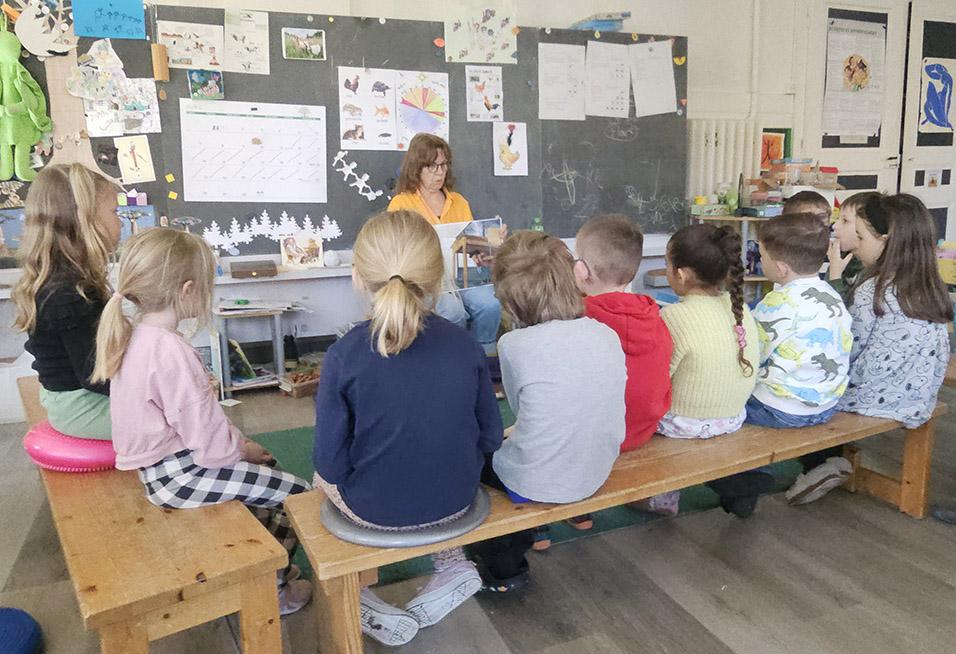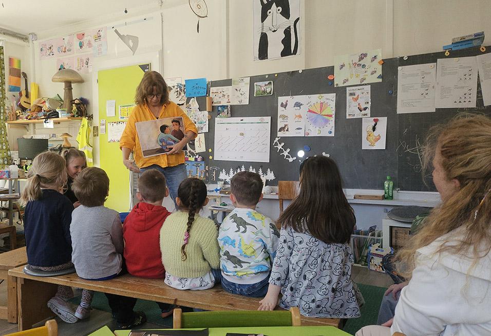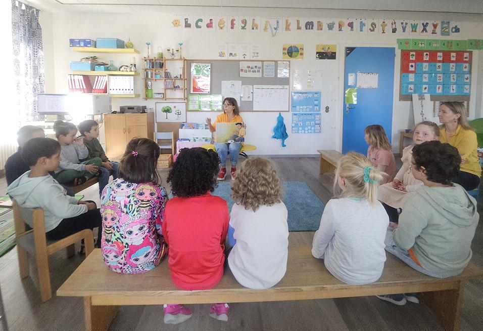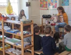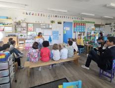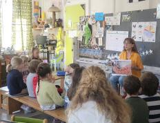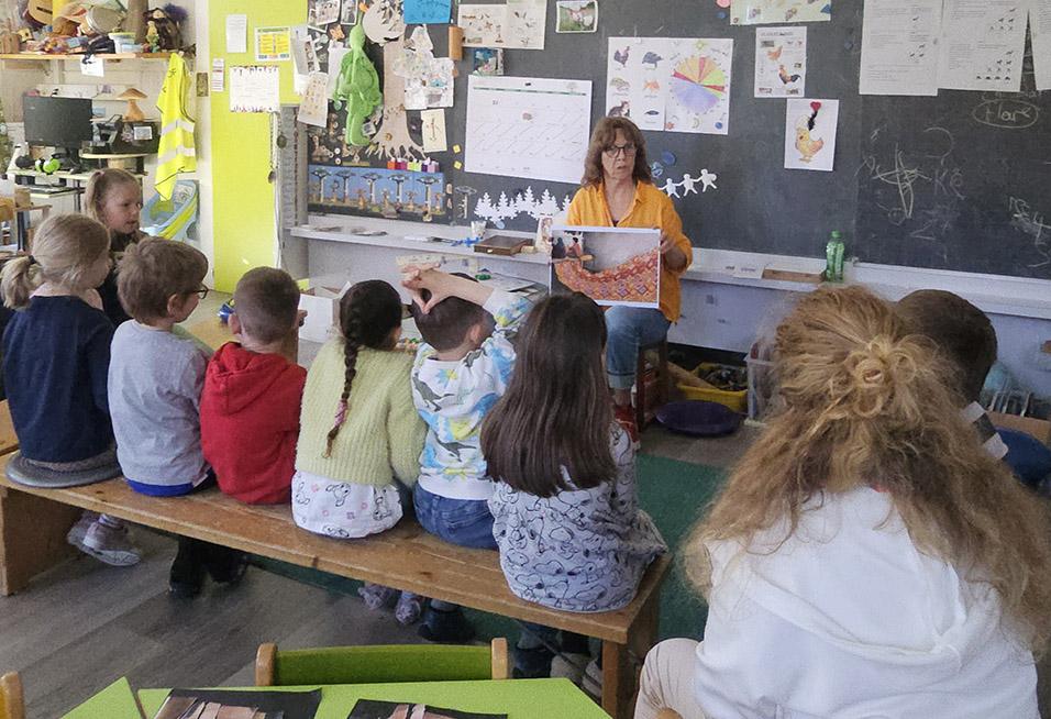 Jeudi 10 avril. Les élèves du Collège du Temple Fleurier rencontrent Mary Wenker autour du livre Hasan venu d'ailleurs. 3 Classes des enfants de 5e et 6e HP se montrent très intéressés par cet échange. La rencontre est suivie d'un repas aux saveurs afghanes, dégusté sur des couvertures installées dans la cour de l'école.