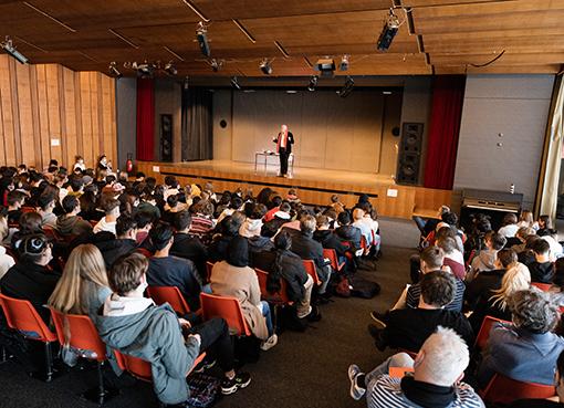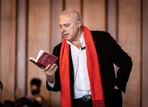 "La littérature et la philosophie de la Renaissance proposent une vision unitaire de l’être humain : nourrir le corps sans nourrir l’esprit est principe de stérilité. Les humanistes ont fait du banquet le lieu où conjuguer avec sagesse les mets et les mots, les saveurs et les savoirs. La nourriture est pour eux métaphore de fécondité dans le domaine spirituel comme dans celui de la culture et de la vie civile. Nous visiterons plusieurs banquets qui expriment différentes visions de la poétique, de la philosophie et de l’existence, et enseignent une convivialité où la pensée et les sens, s’enrichissant mutuellement, nous aident à goûter la vie." Lycée Blaise Cendrars, La Chaux-de-Fonds