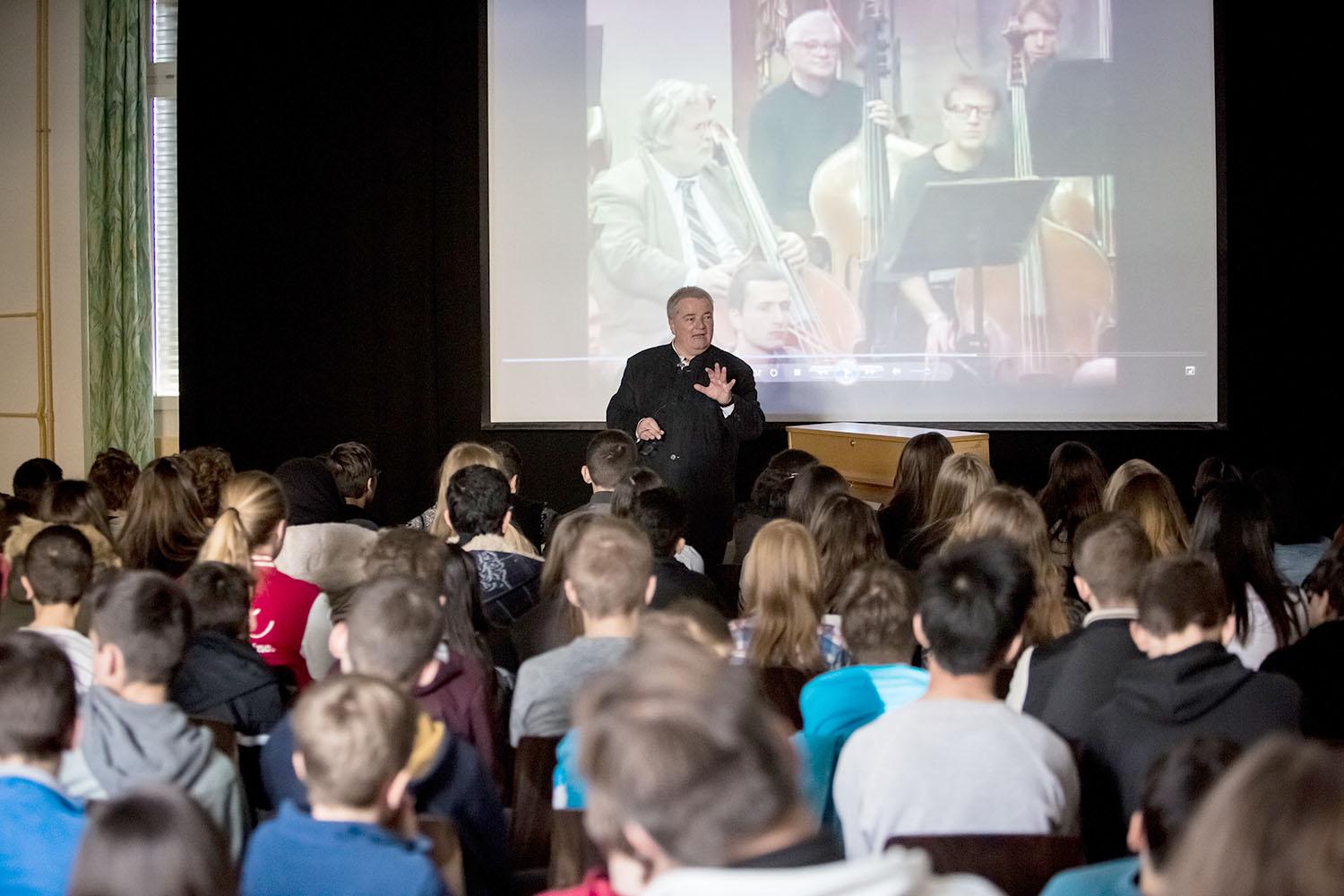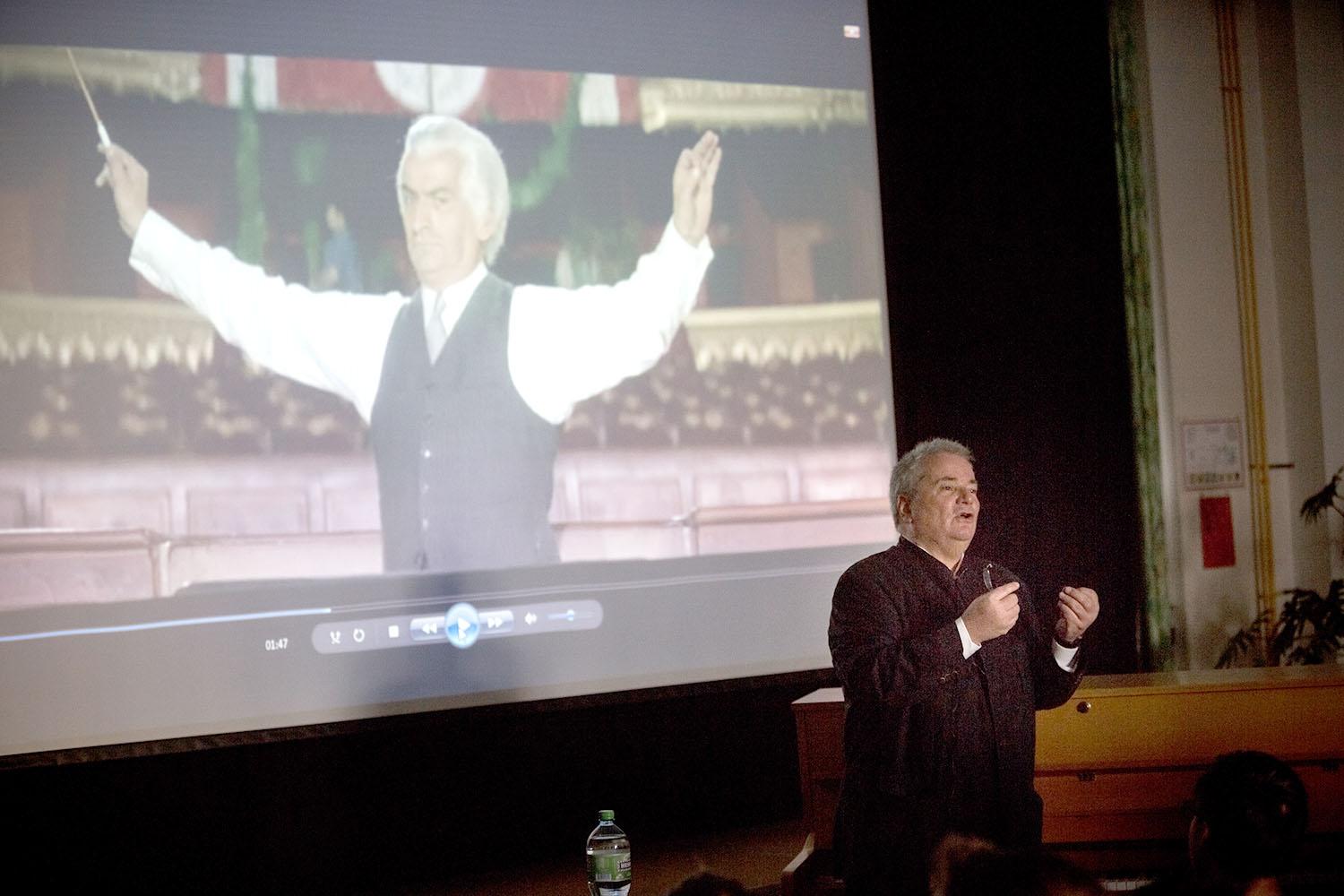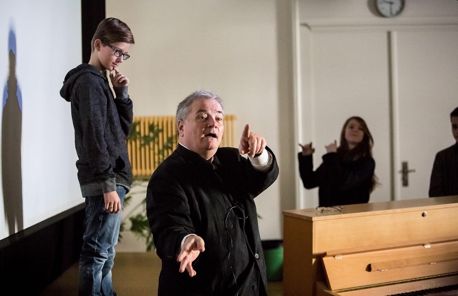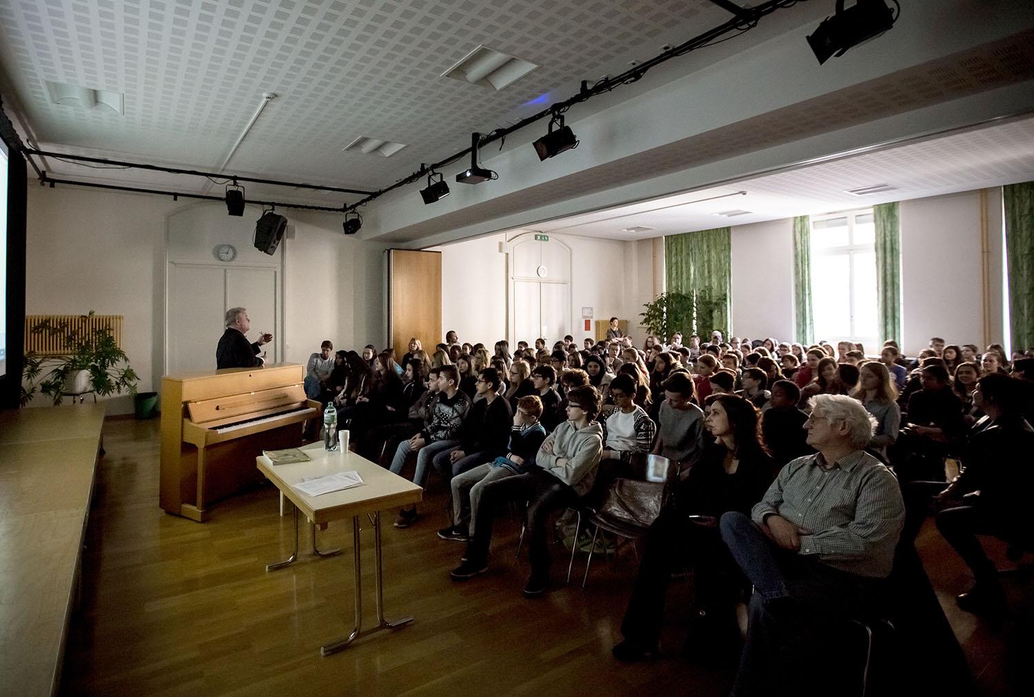 Chef d’orchestre, compositeur, pédagogue, directeur de European concerts orchestra et du programme Transartis, Patrick Crispini a présenté quelques aspects de son métier de chef d’orchestre, puis évoqué les Années folles, à travers quelques personnalités du monde des arts : Jean Cocteau, Erik Satie, Le Groupe des six, Les Ballets russes et Pablo Picasso, Francis Poulenc, Maurice Ravel et le Boléro, Man Ray… Collège des Terreaux, le 11 mars 2015,