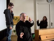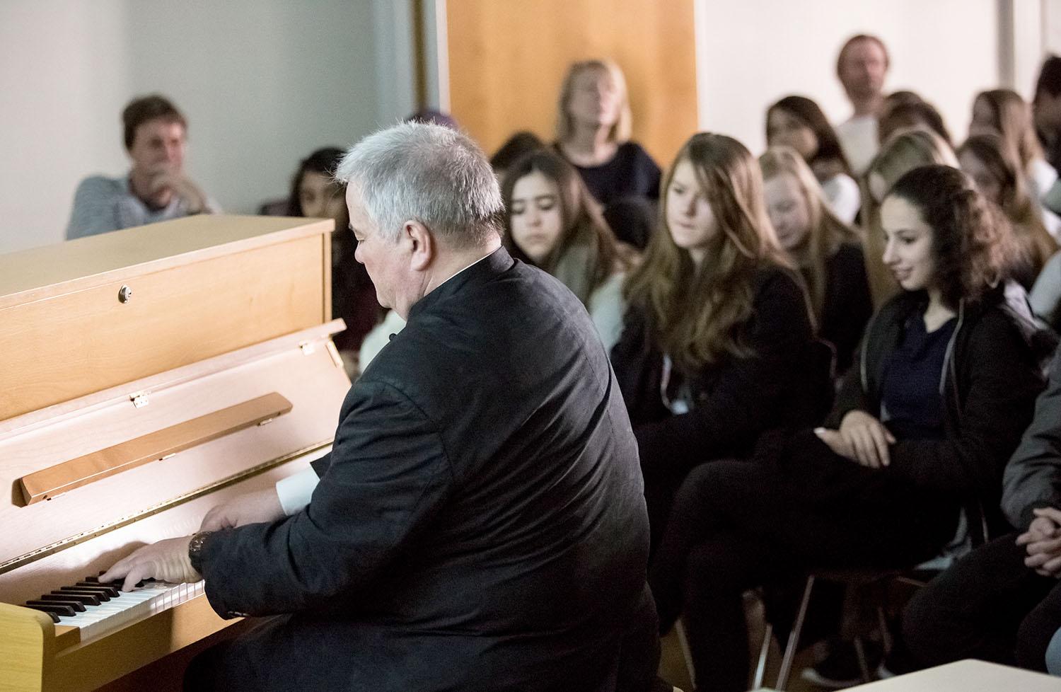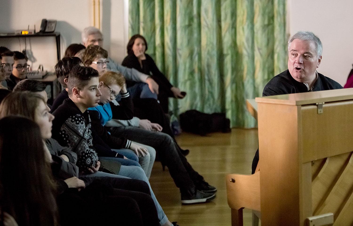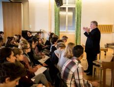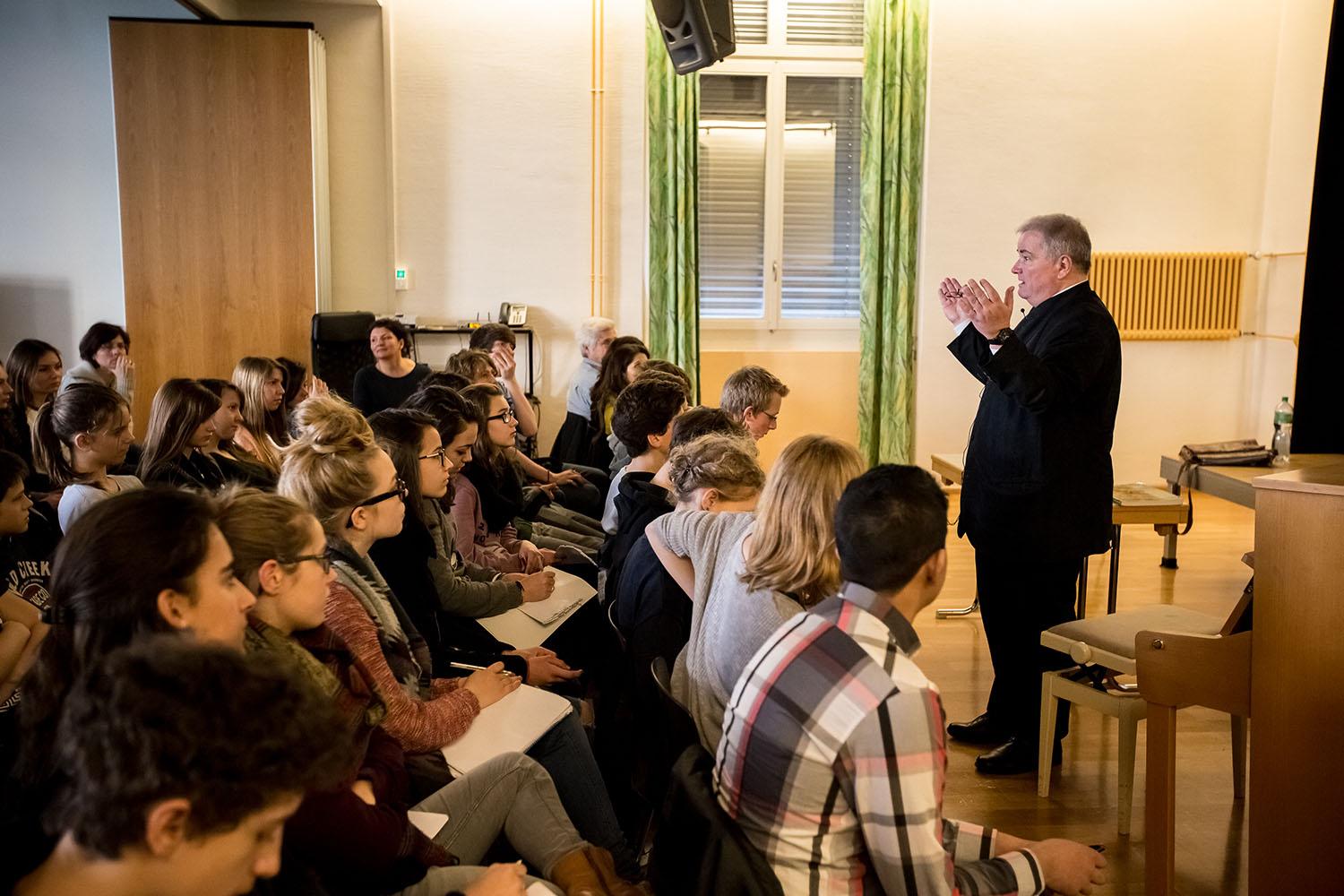 Chef d’orchestre, compositeur, pédagogue, directeur de European concerts orchestra et du programme Transartis, Patrick Crispini a présenté quelques aspects de son métier de chef d’orchestre, puis évoqué les Années folles, à travers quelques personnalités du monde des arts : Jean Cocteau, Erik Satie, Le Groupe des six, Les Ballets russes et Pablo Picasso, Francis Poulenc, Maurice Ravel et le Boléro, Man Ray… Collège des Terreaux, le 11 mars 2015,