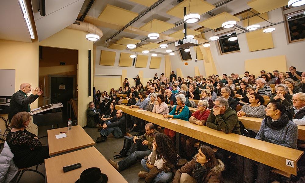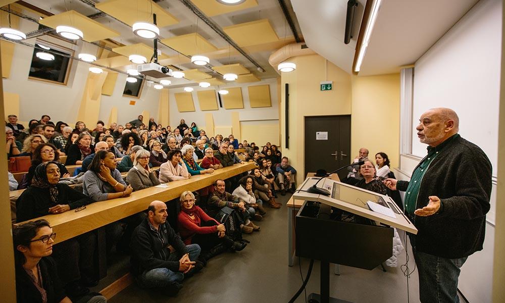 Philosophe, poète et écrivain (Prix Goncourt 1987), traduit dans plus de quarante pays, Tahar ben Jelloun est aussi un intellectuel engagé qui intervient régulièrement dans les débats de société. Fracture sociale, racisme, immigration, identité, sont des sujets qu’il aborde régulièrement dans ses chroniques pour la presse. Il expose cet automne, pour la première fois, à la Galerie du Passage à Paris, ses peintures écrites : " J’écris sur la douleur du monde et je peins la lumière qui nous manque". Ce qui nous motive, ce qui nous rassemble, nos visions, notre idéal, nos valeurs Il est urgent de surmonter les crises qui mettent aujourd’hui à l'épreuve nos valeurs de solidarité et d'humanisme, et d'envisager le vivre ensemble dans une perspective positive, malgré les difficultés inhérentes à ces situations exceptionnelles, car « chaque homme porte la forme entière de la condition humaine ». Conférence organisée conjointement avec la FéNéCi, le COMITES et l'association Graine de génie, Graine de citoyen, le 27 novembre 2015, à la faculté de droit de l'université de Neuchâtel.