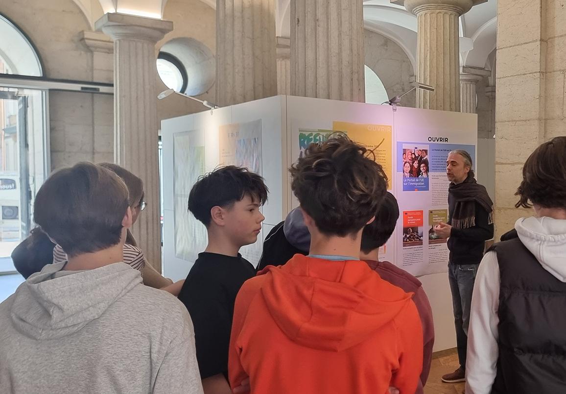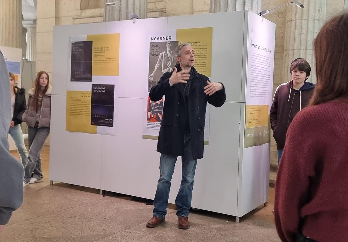 Ces visites, accompagnées et commentées par le professionnel Boris Bruckler, ont constitué un moment particulièrement enrichissant. Les élèves ont pu découvrir comment l’affiche peut devenir un support puissant de dialogue et de sensibilisation aux enjeux migratoires.