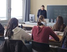28 mars - Les élèves du lycée Blaise-Cendrars à La Chaux-de-Fonds ont écouté attentivement aujourd'hui la conférence donnée par Hélène Dumas, où elle parle de sa recherche sur l'histoire du génocide des Tutsis.